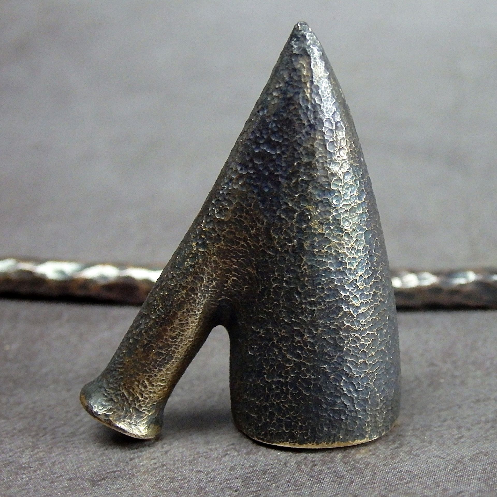 To make this item, a wax model was cut out by hand. Then, using the lost wax method, bronze parts were cast.