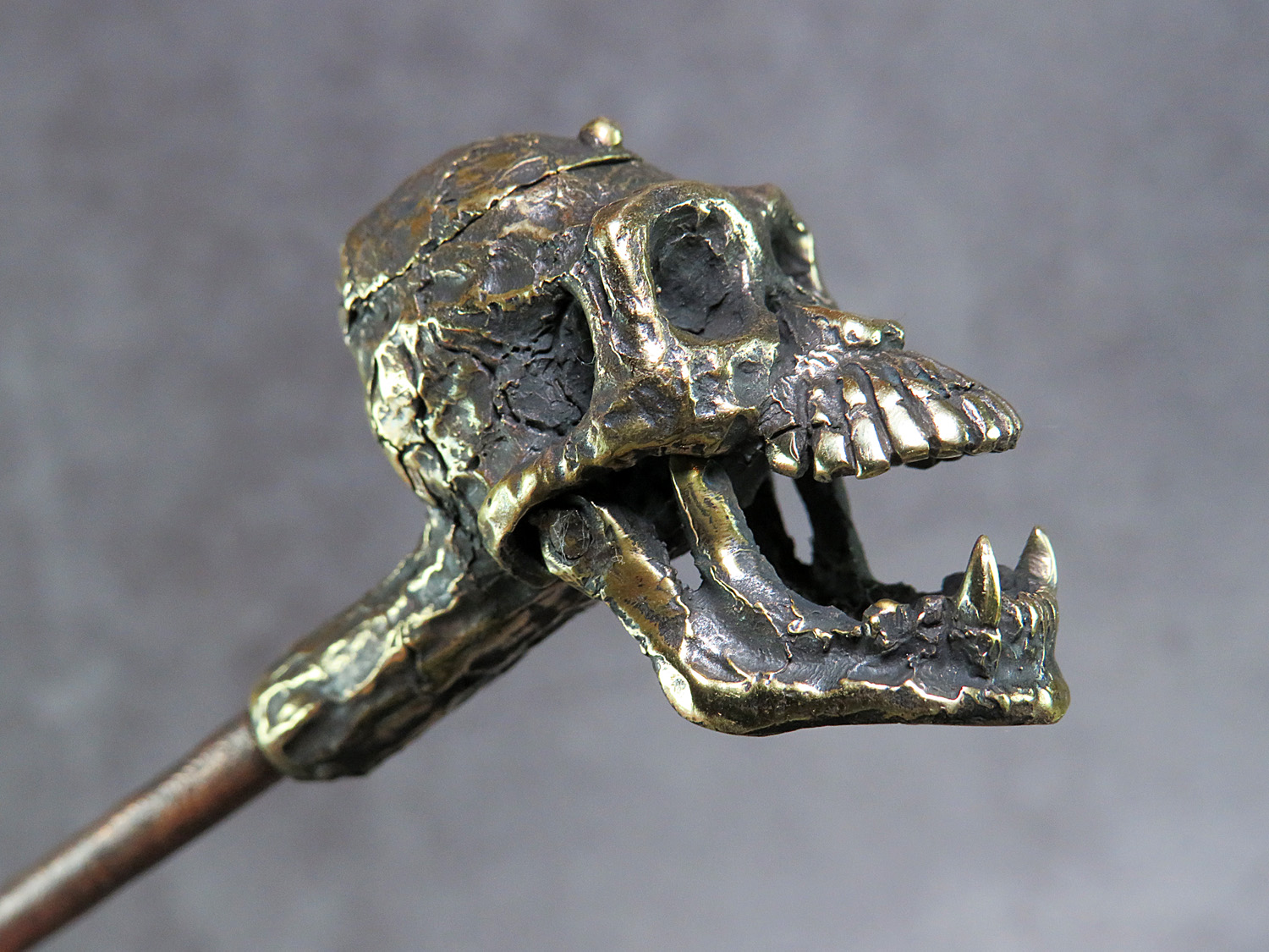 The skull is made by hand (without using computer technology) from bronze according to the author's sketch.
