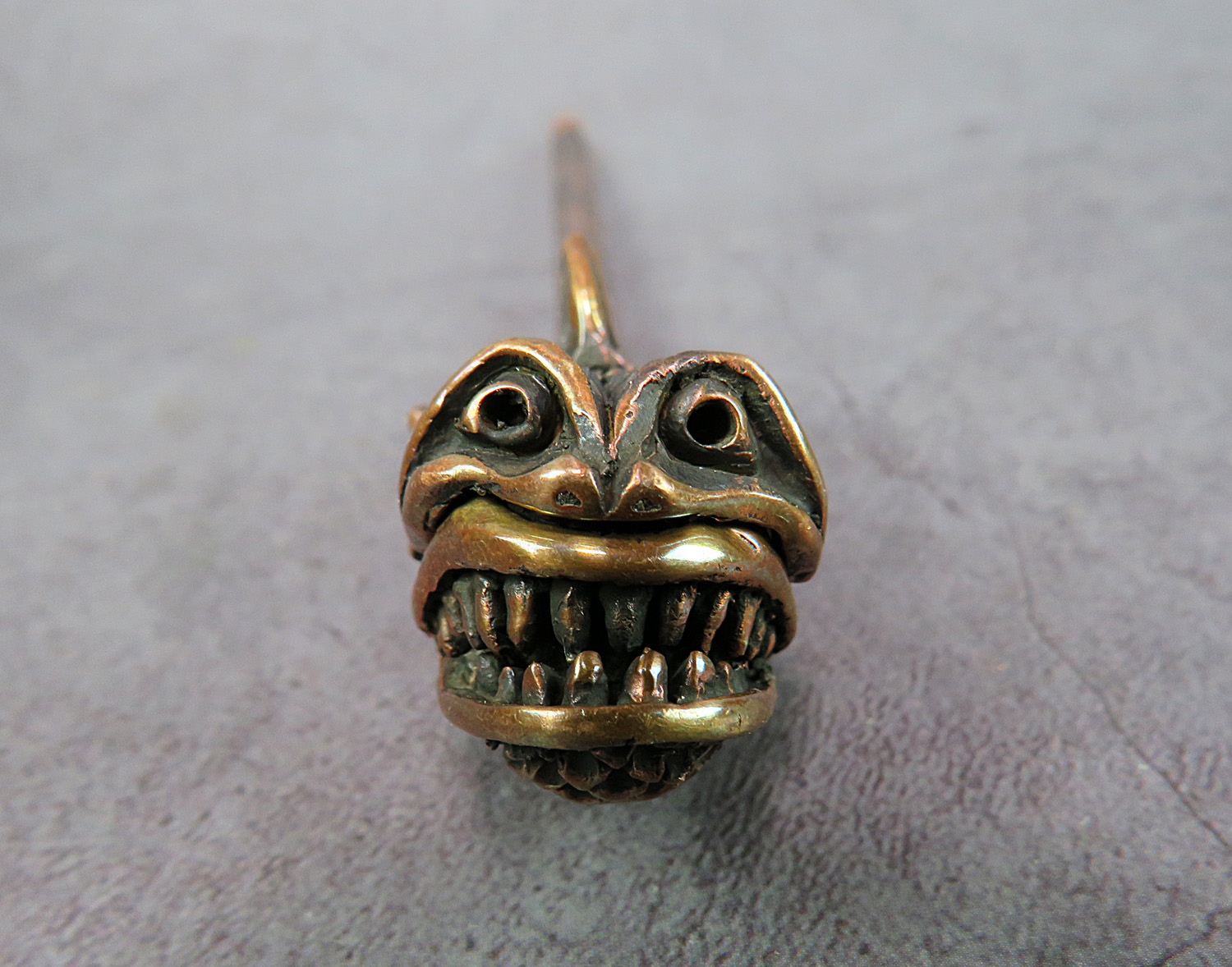 A handmade smoking pipe in the form of an evil toothy sea creature. The mouthpiece is made of copper, it is screwed on, can have a length (from 3 to 30 cm) and a shape at the request of the buyer.
