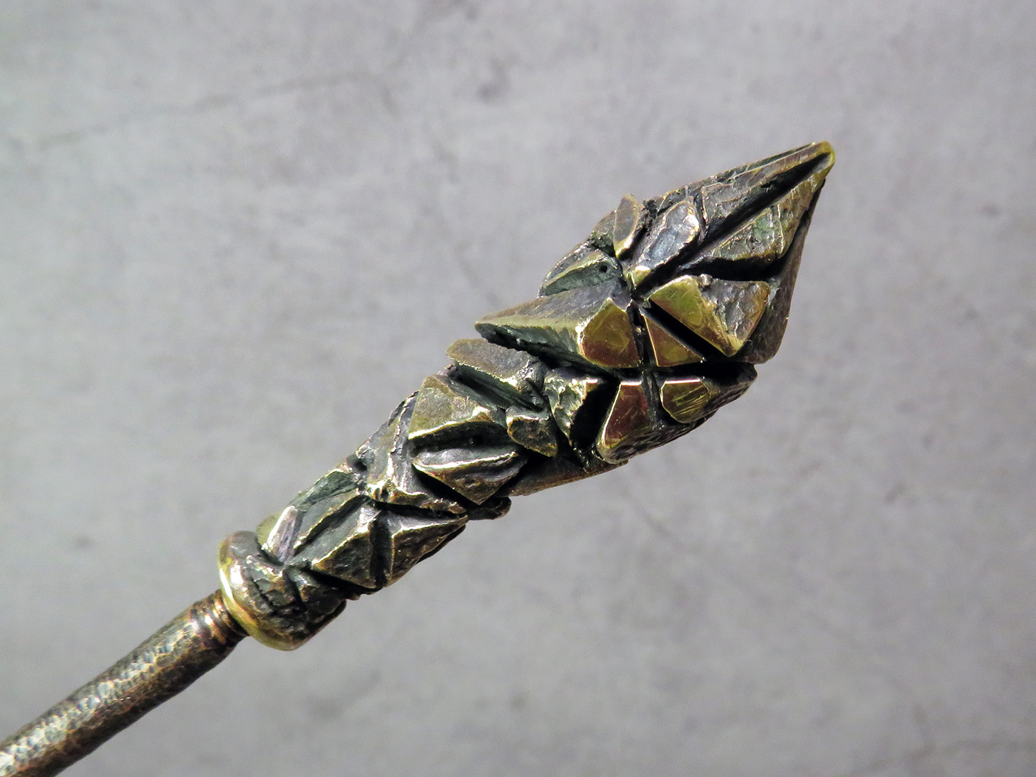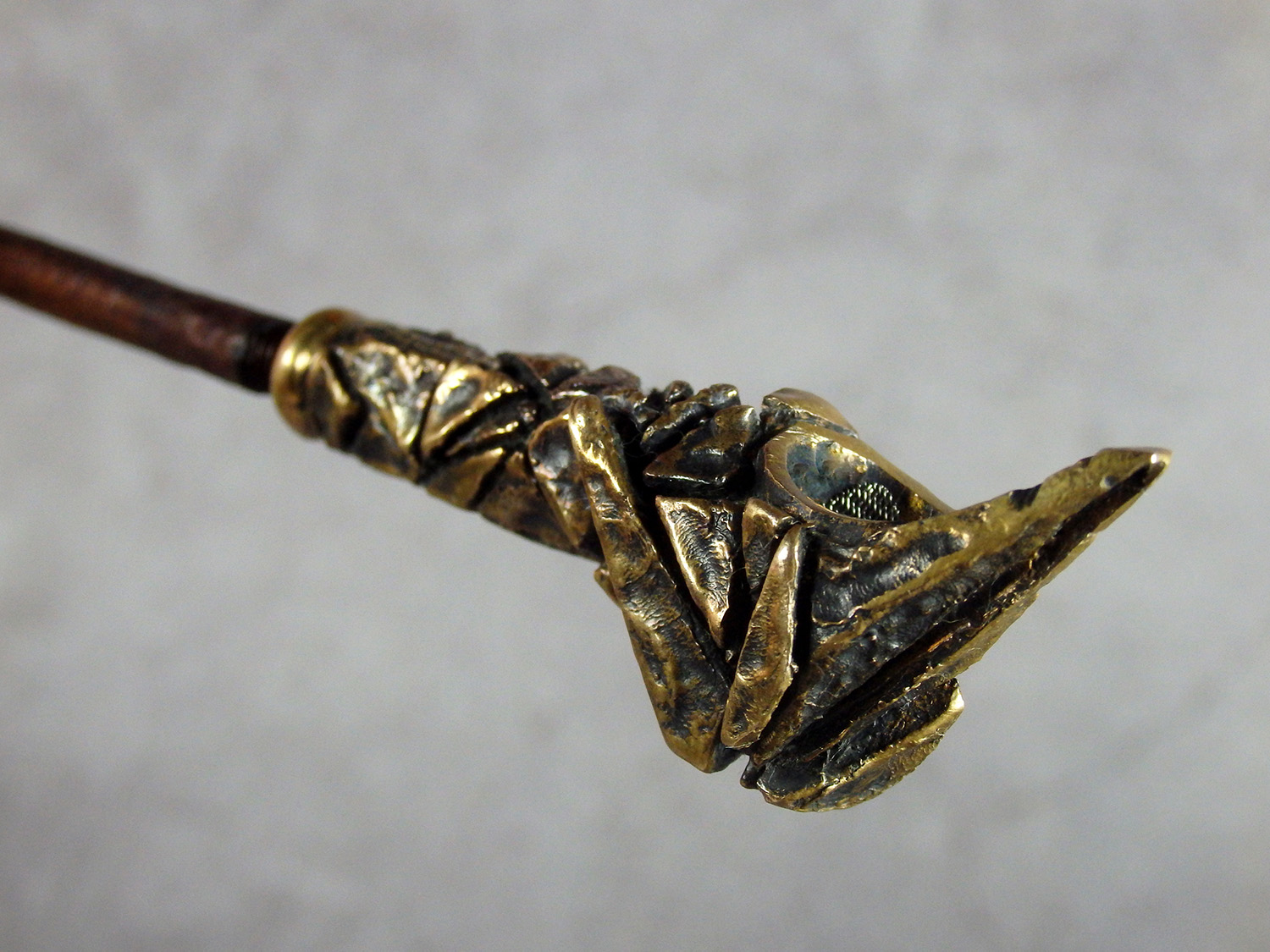 To make this item, a wax model was cut out by hand. Then, using the lost wax method, bronze parts were cast.