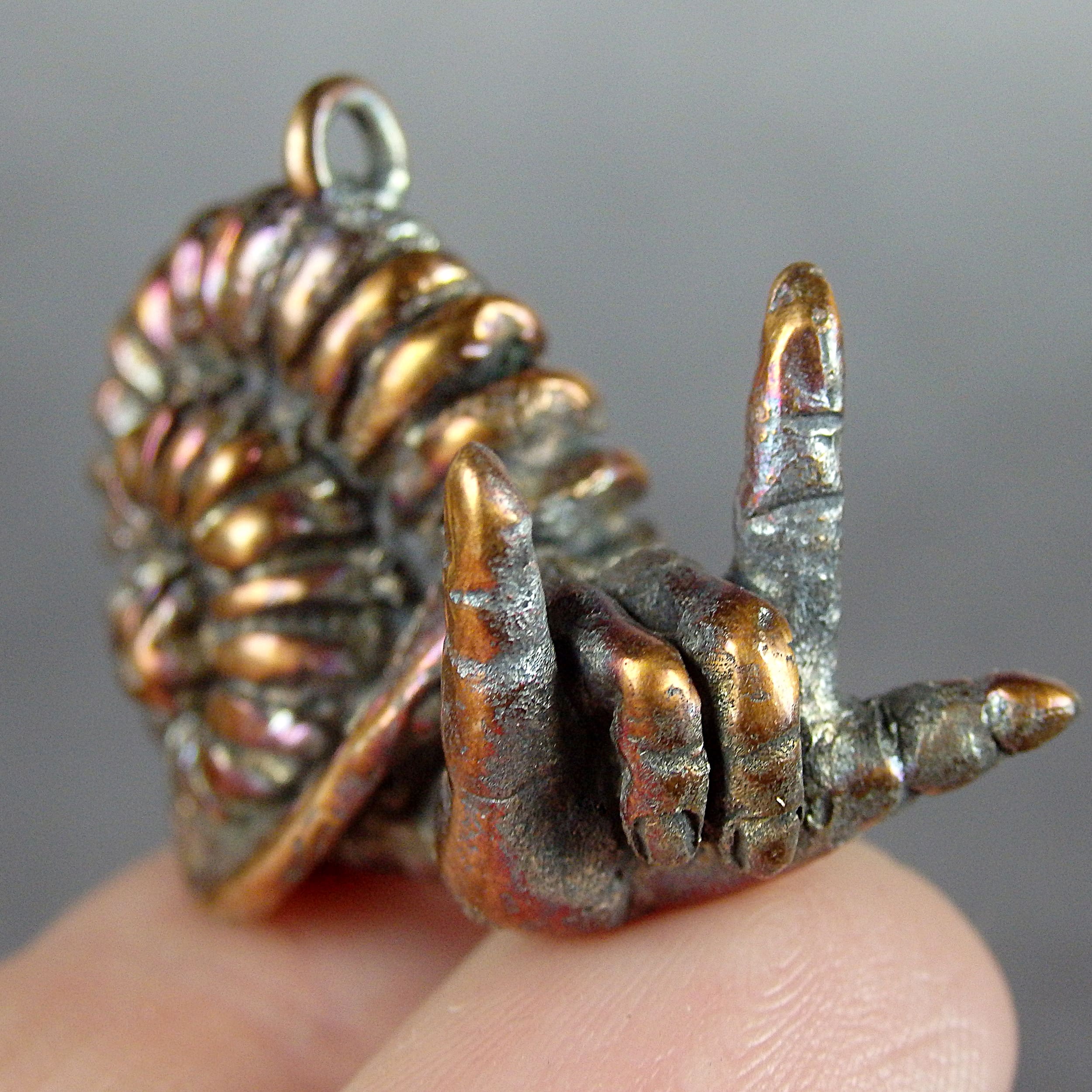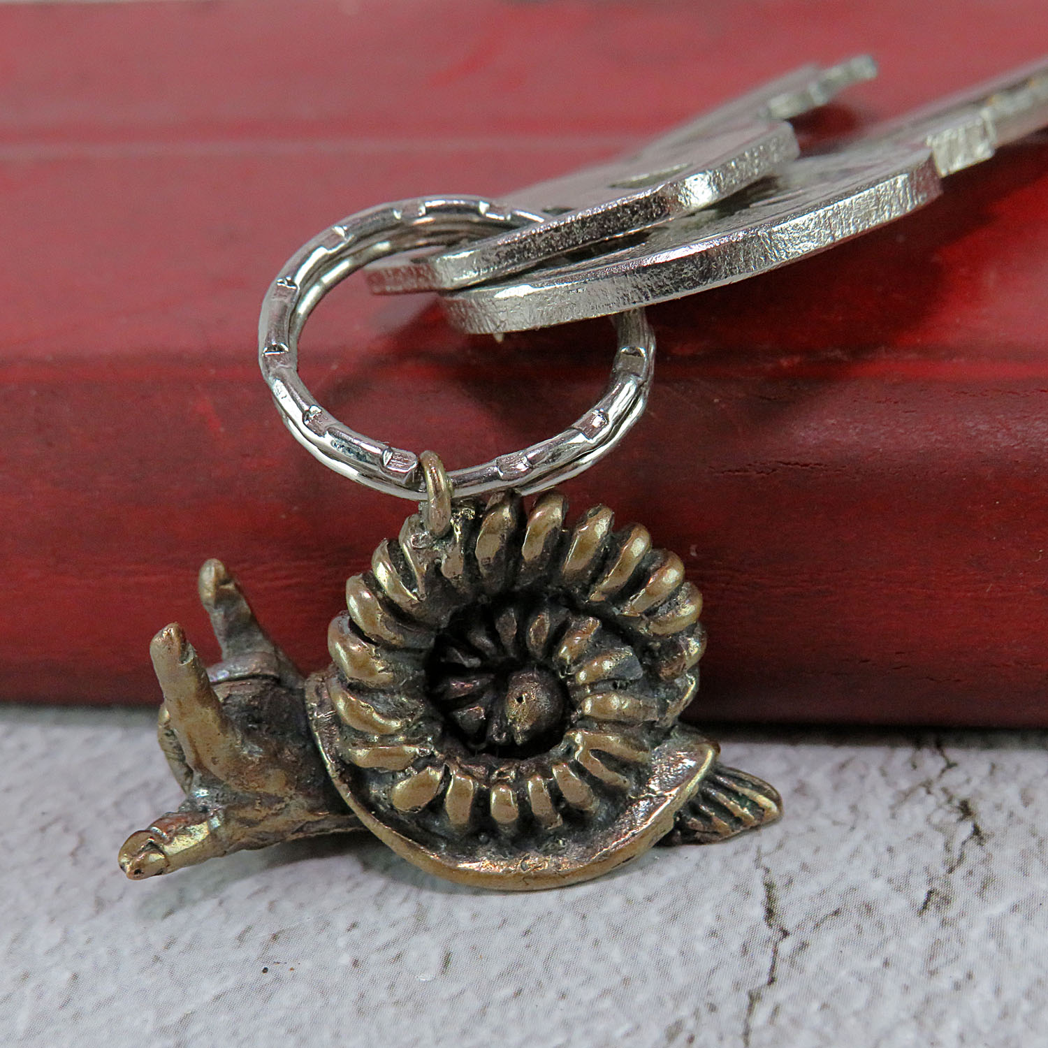 A little bronze snail that says "I love you" in sign language. ILY's gesture is the most popular and has long ago been used outside the boundaries of American Sign Language, so this keychain will be a great little token for a loved one.