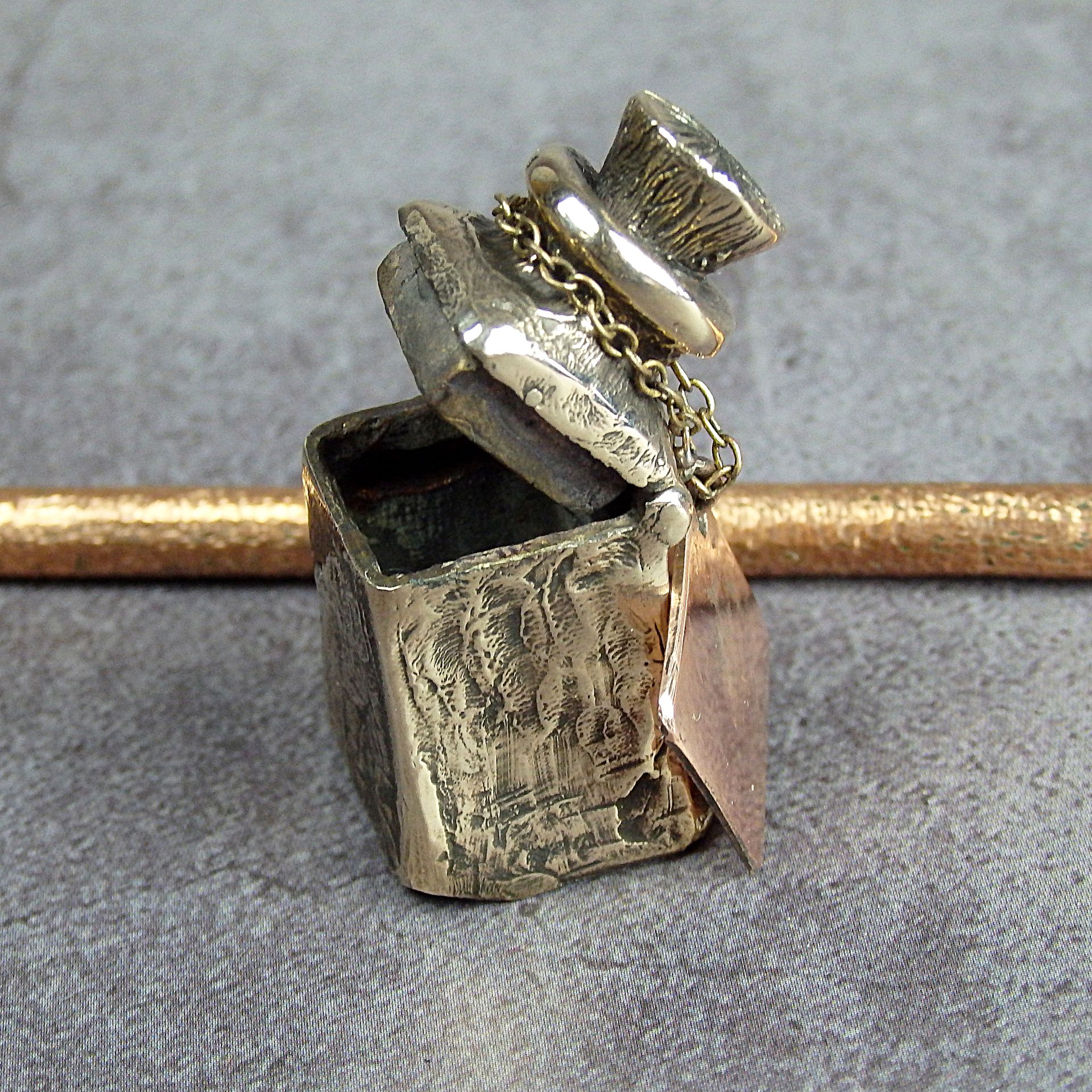 To make this item, a wax model was cut out by hand. Then, using the lost wax method, bronze parts were cast.