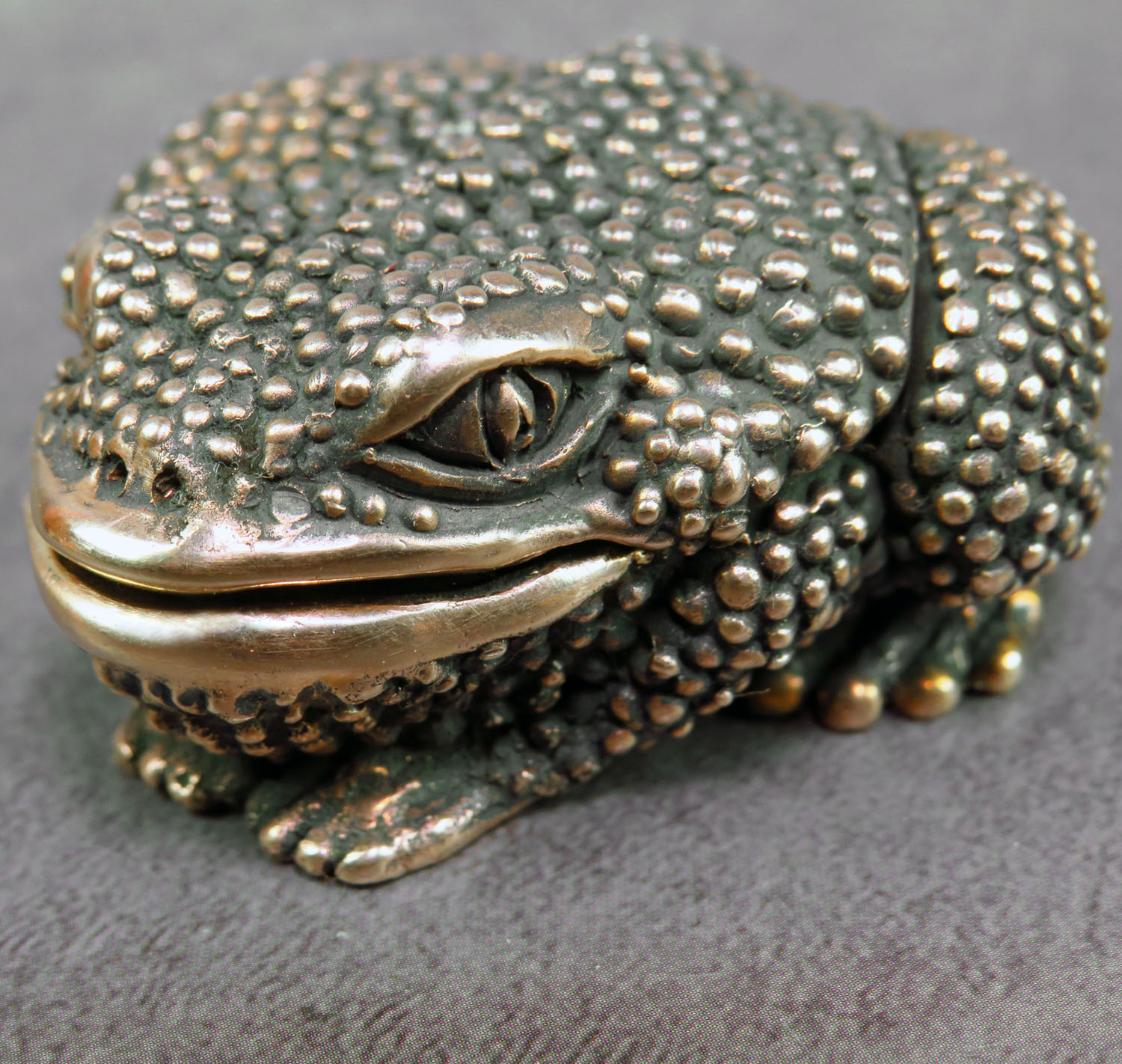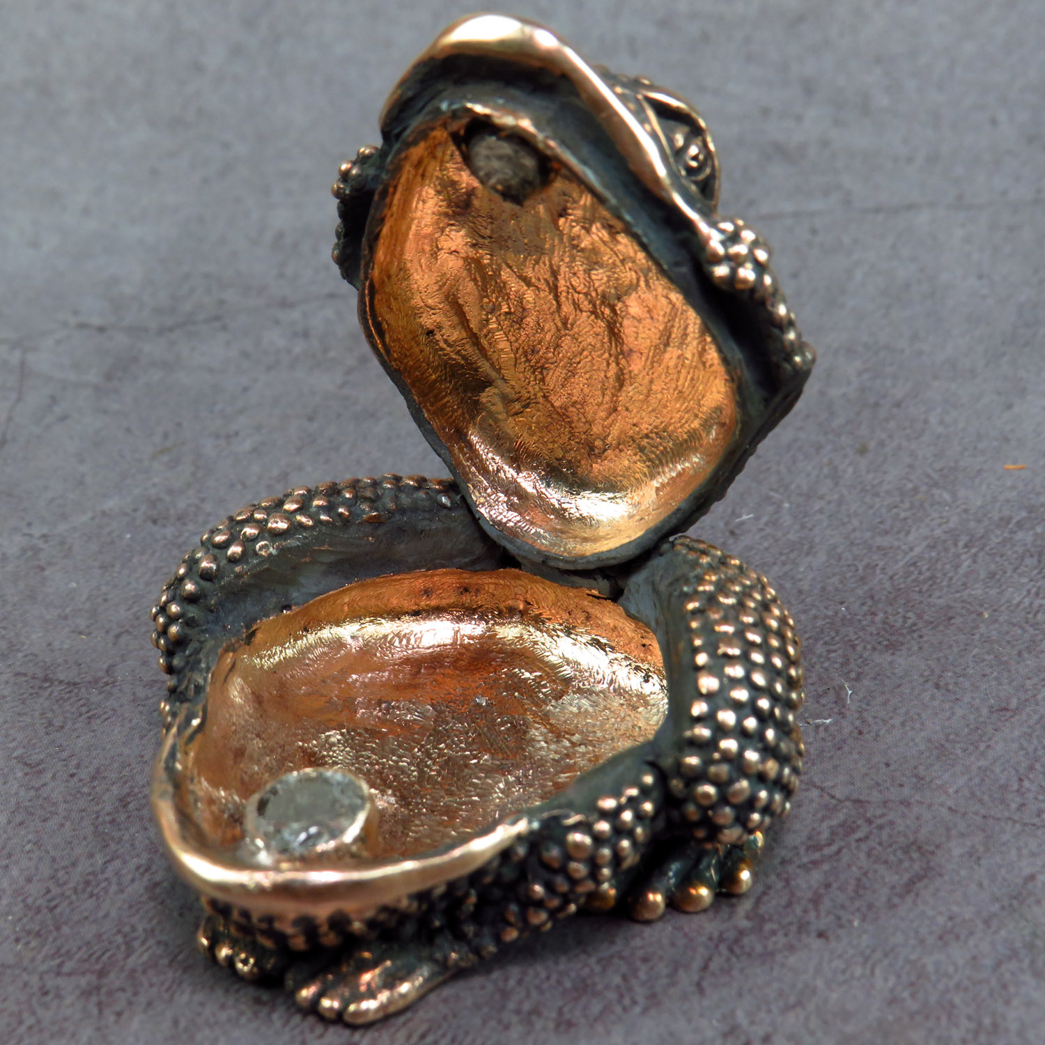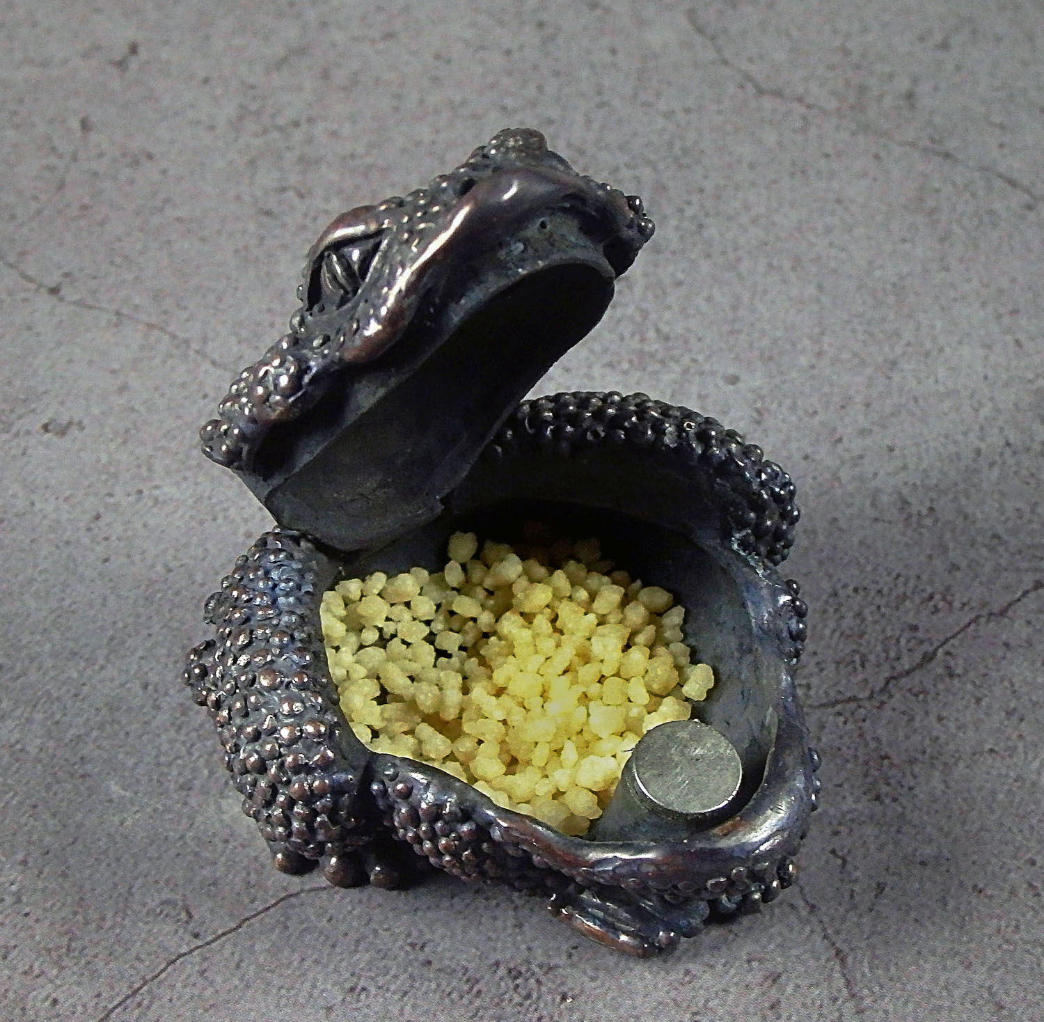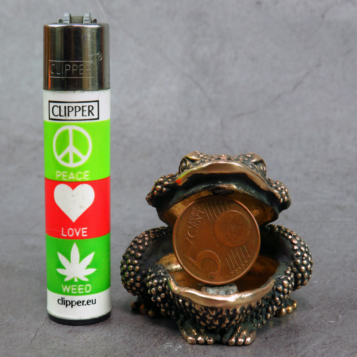 Designer bronze portable ashtray "Frog". This is a convenient thing for those who do not want to depend on the presence or absence of conditions for a comfortable life, but create them for themselves. The ashtray is small and can easily fit into a bag or backpack. It is not very convenient for a pocket on clothes, as it is quite heavy.