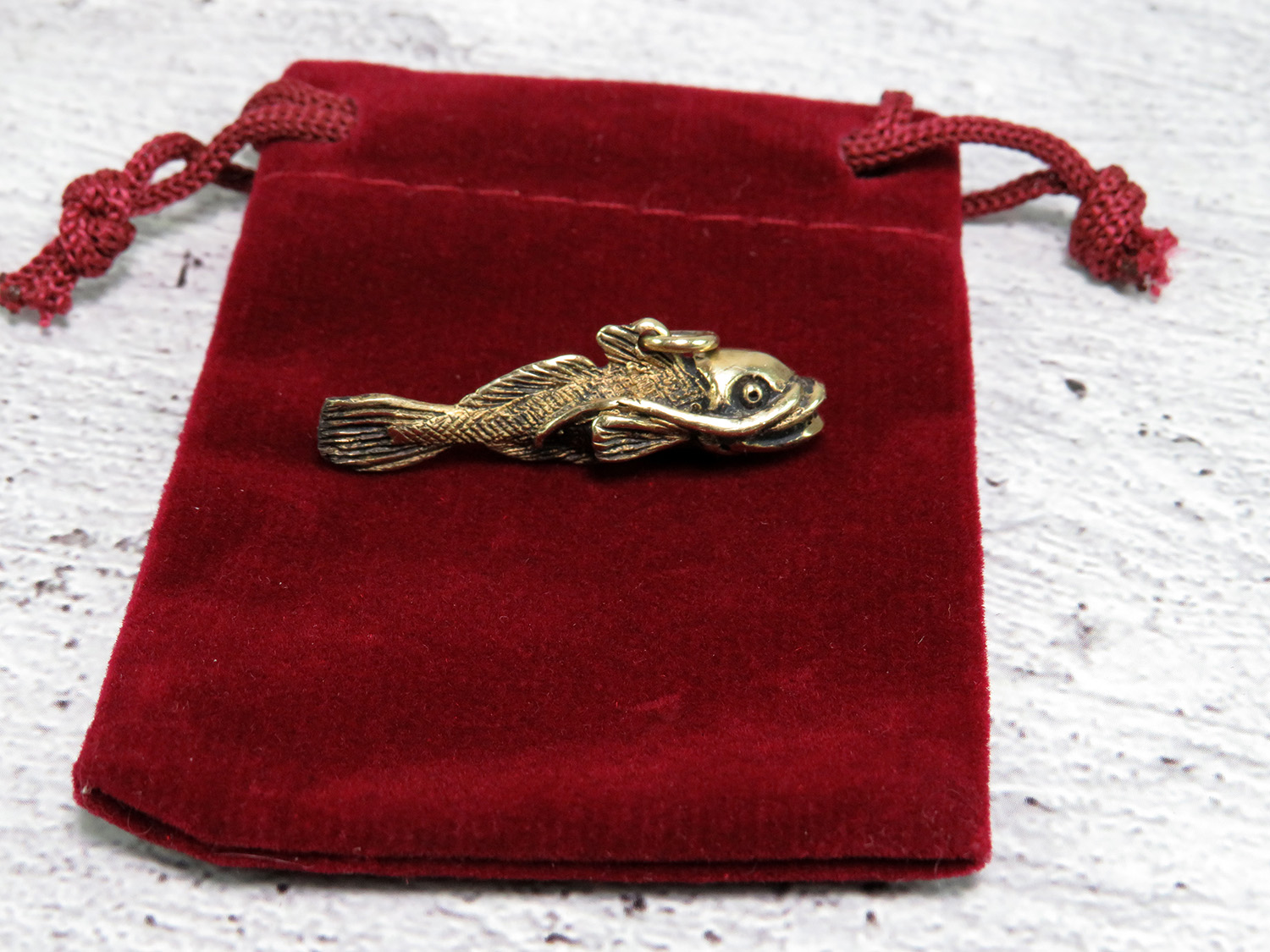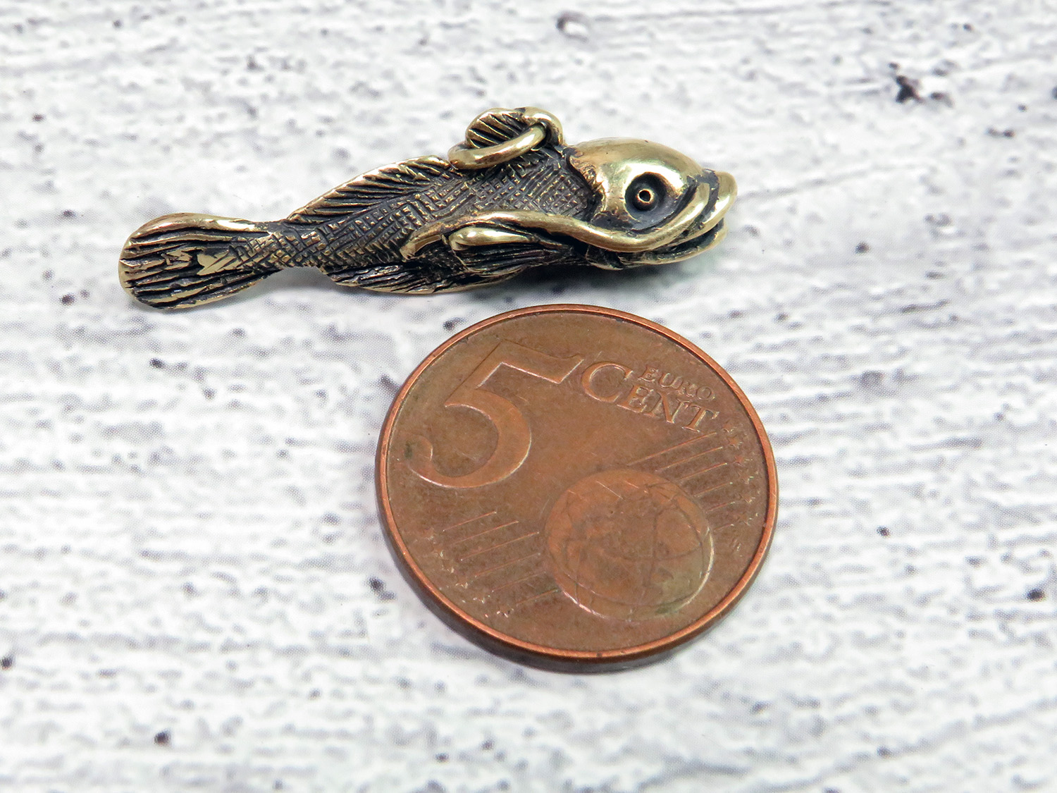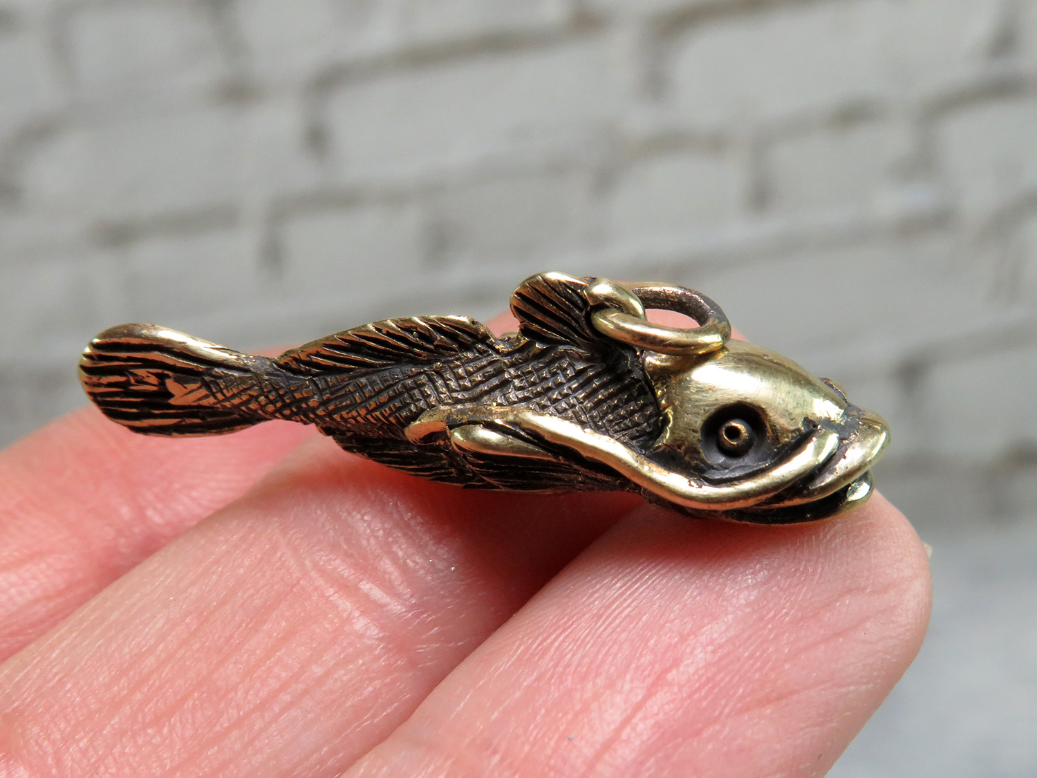 This bronze catfish can be used as a key chain, charm or pendant - for a chain, bracelet, keys or luggage. It will be an excellent symbolic token of attention, as well as suitable as a small gift for aquarists and lovers of fishing.