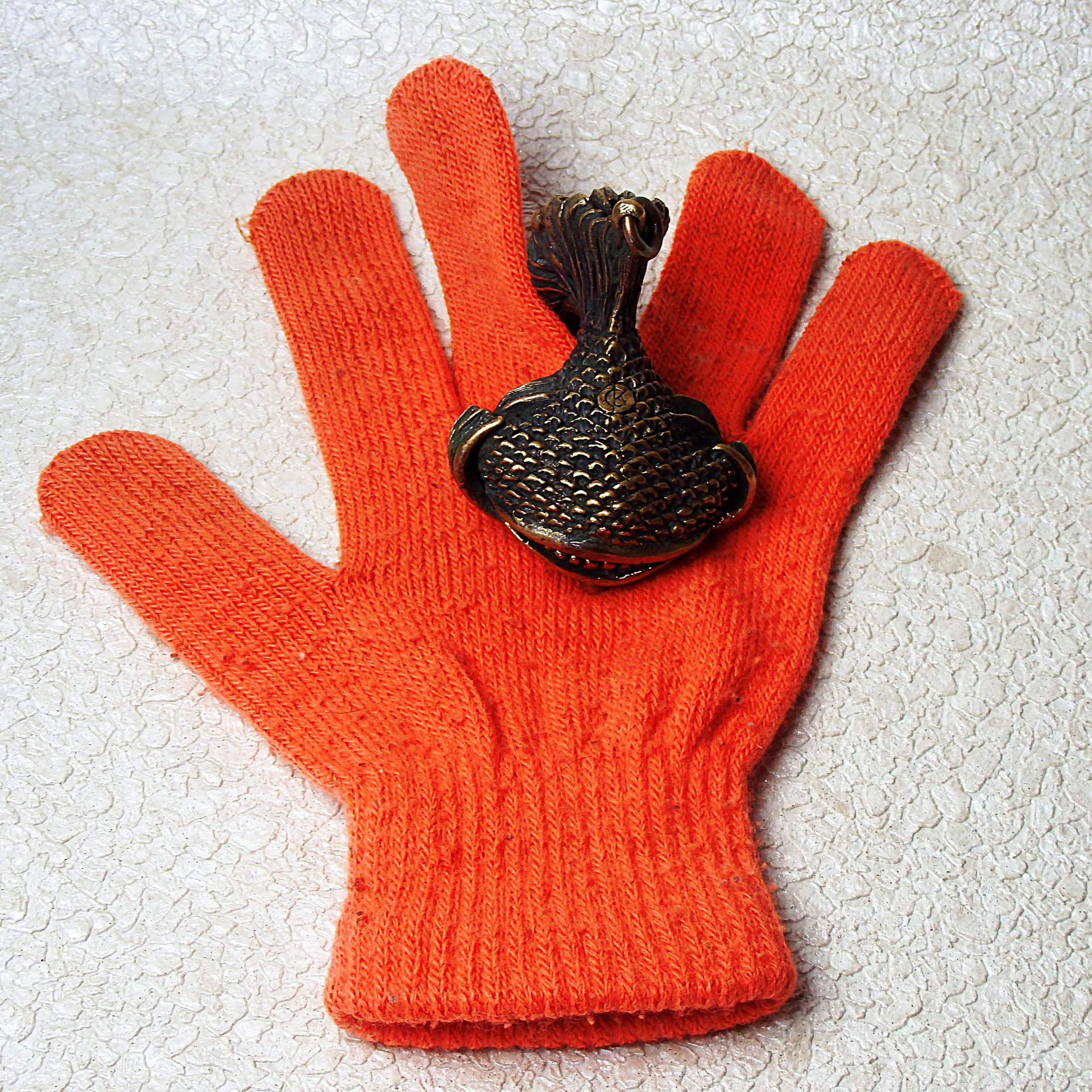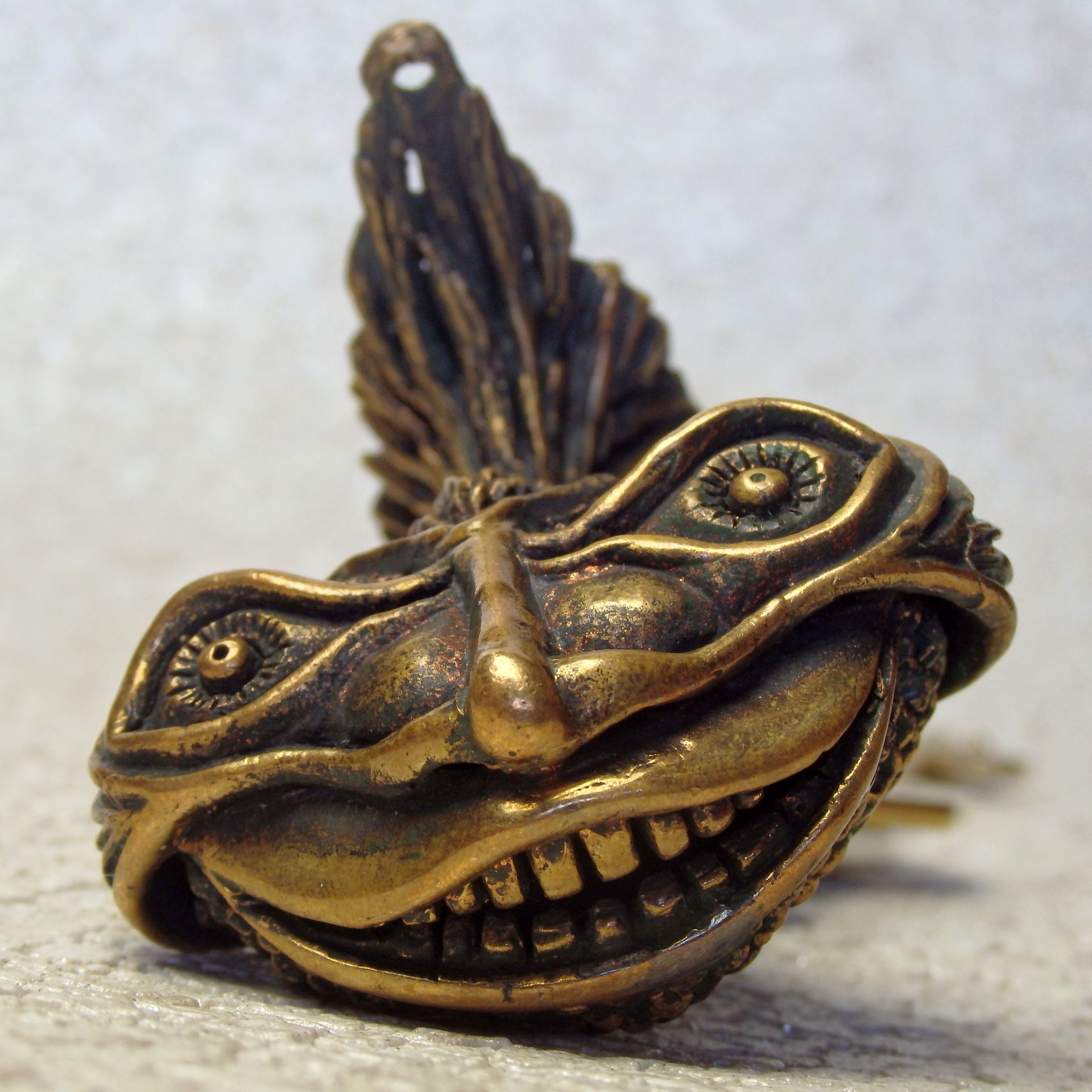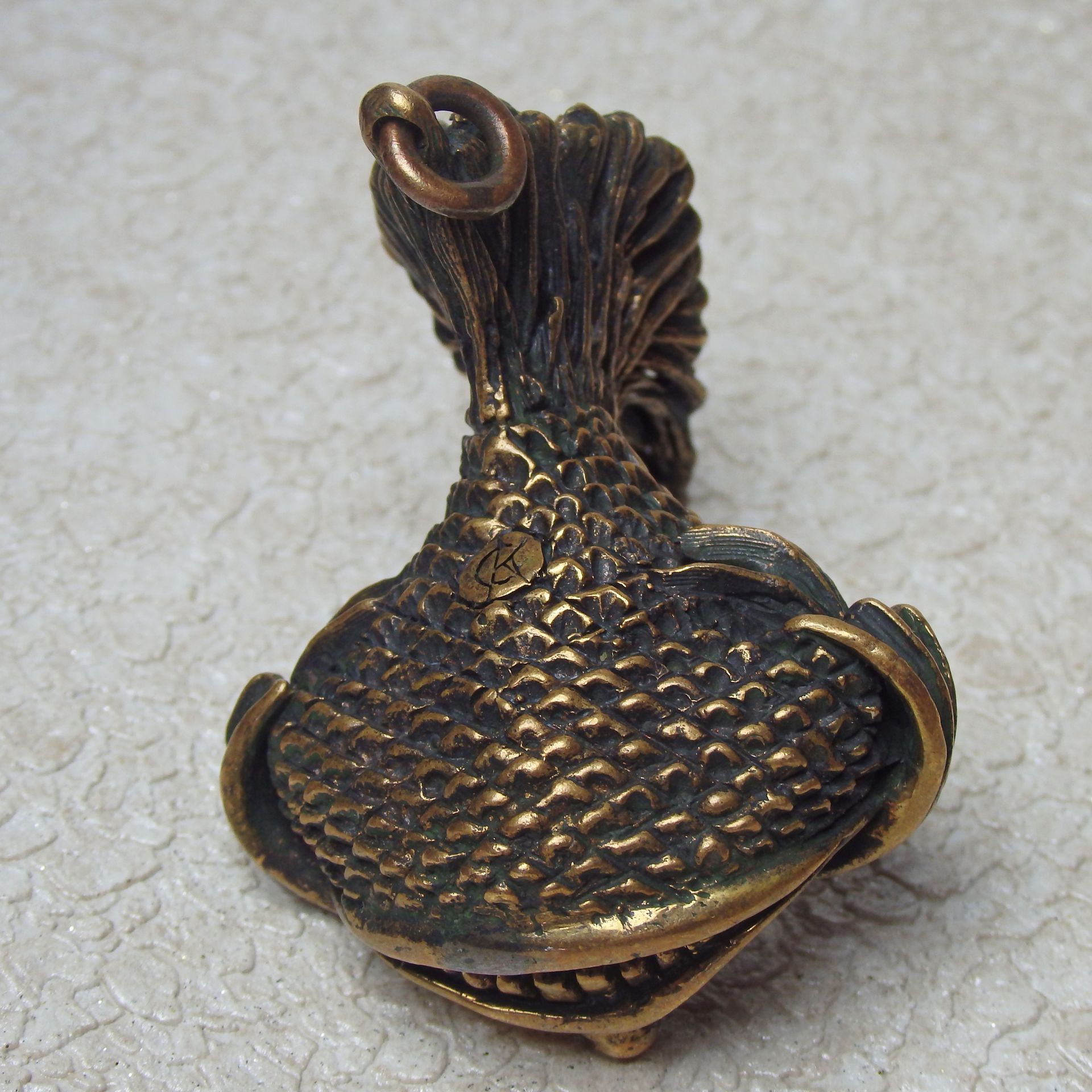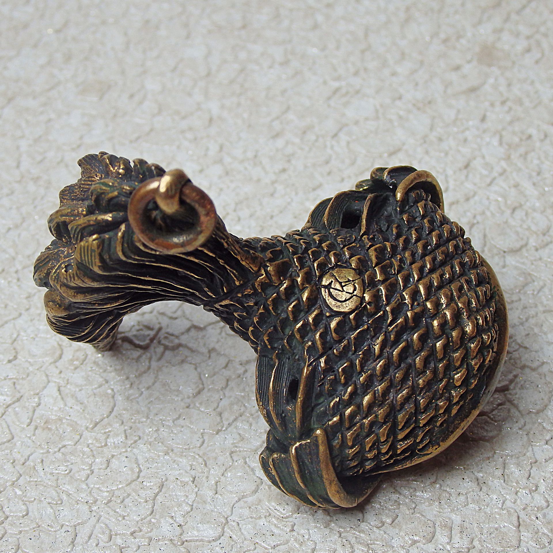 Bronze surreal fish, souvenir acting in self-defense. It can be used as a keychain or attached with a cord to a belt or wrist.