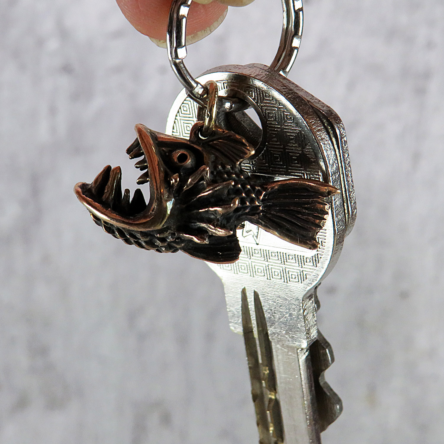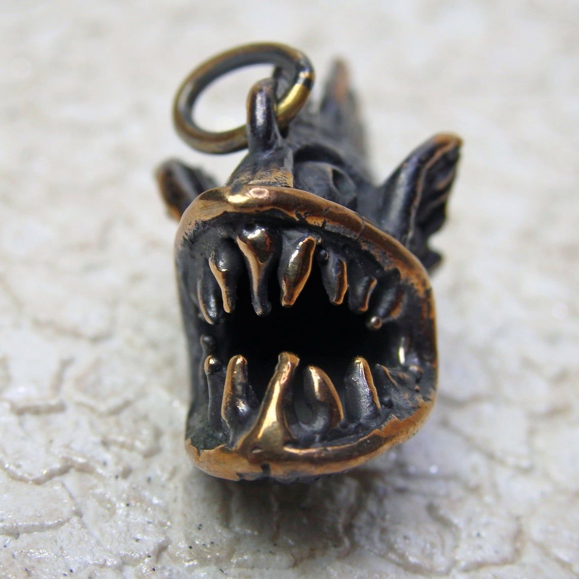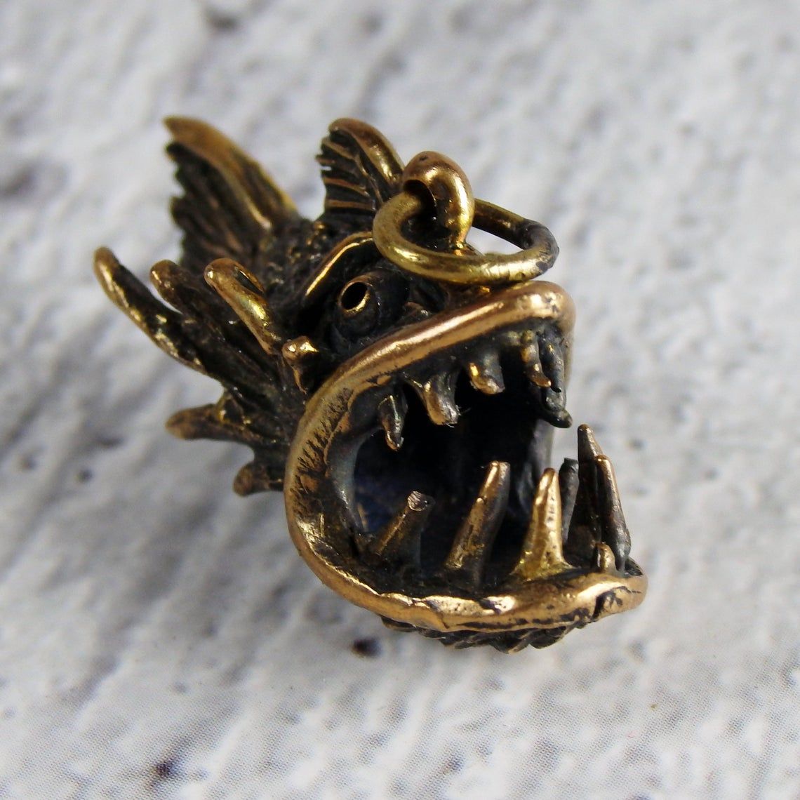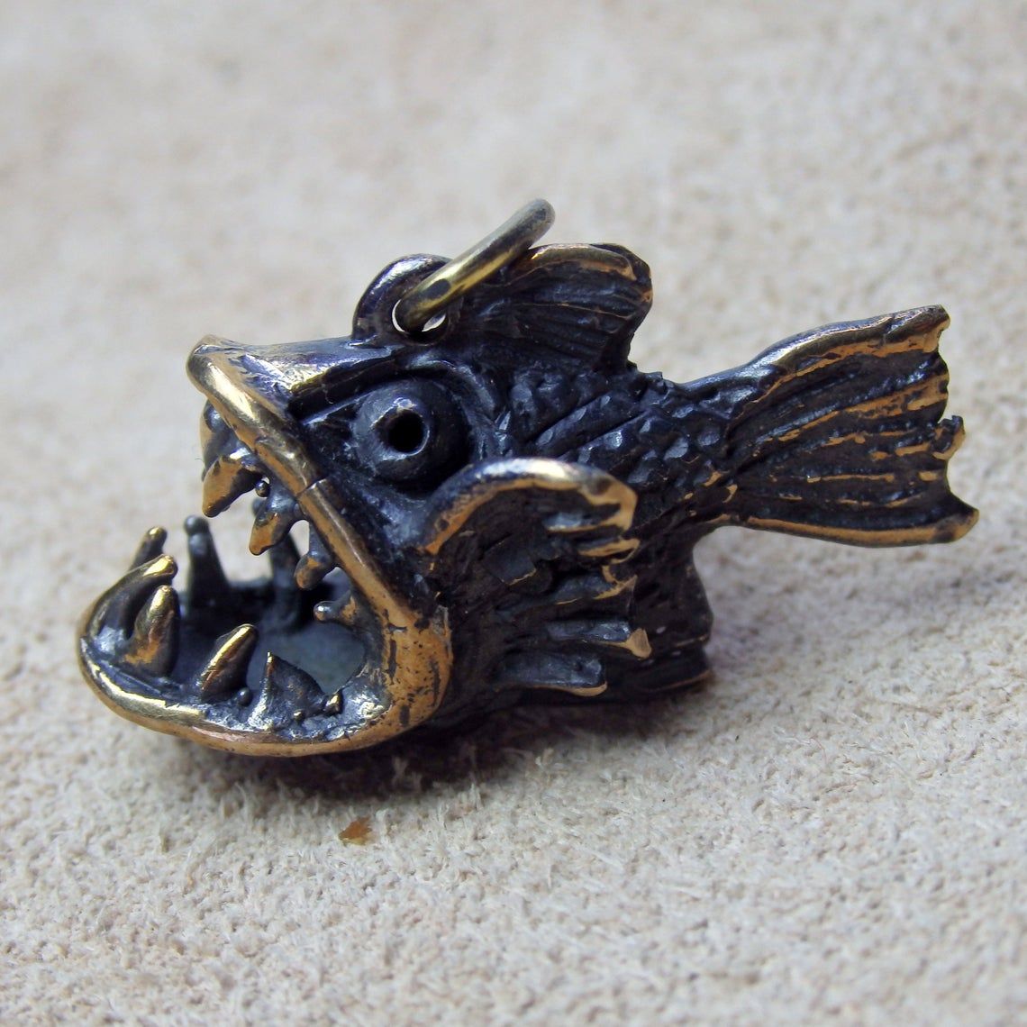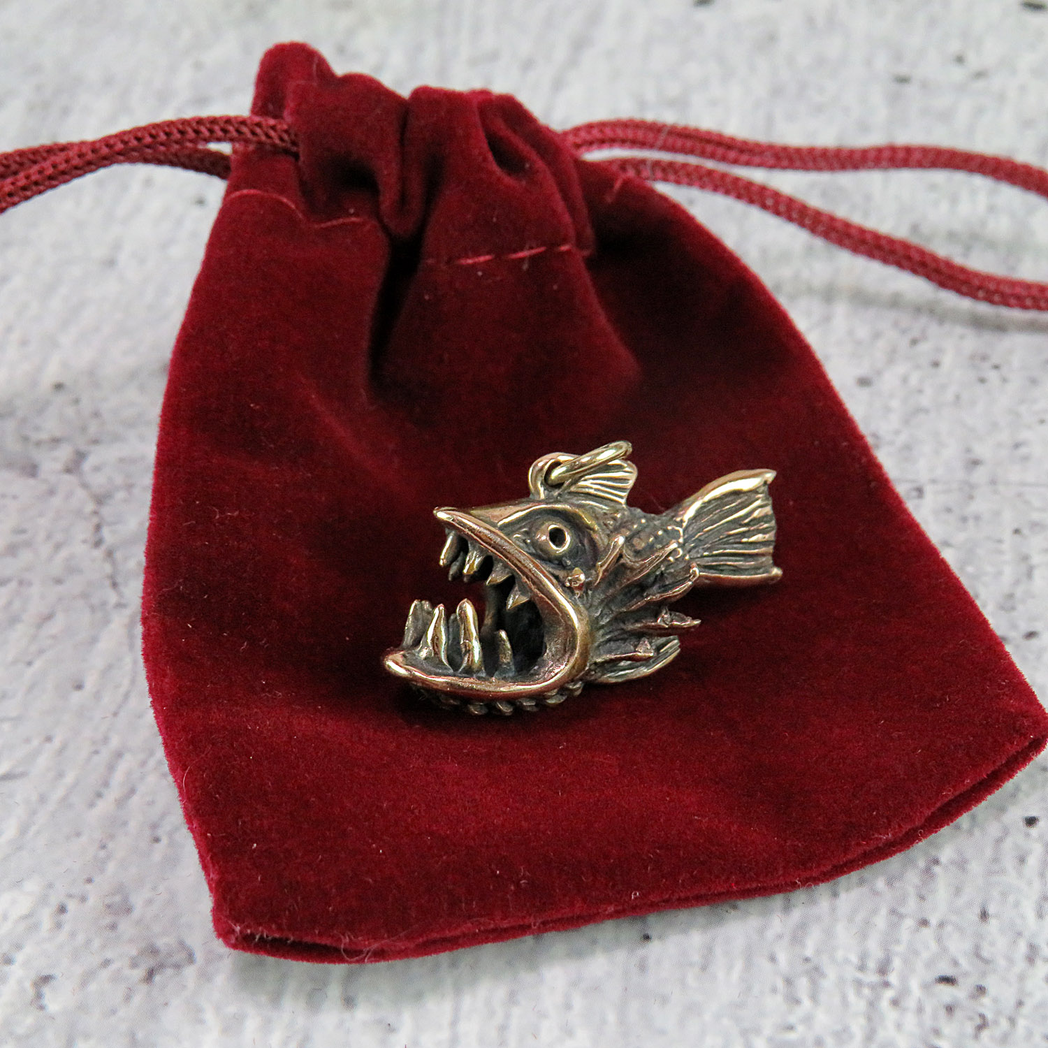 A funny bronze pendant in the form of a small angry fish with sharp teeth will be liked as a small gift for various people - anglers, aquarists, born under the zodiac sign of pisces and fans of Feng Shui teachings.