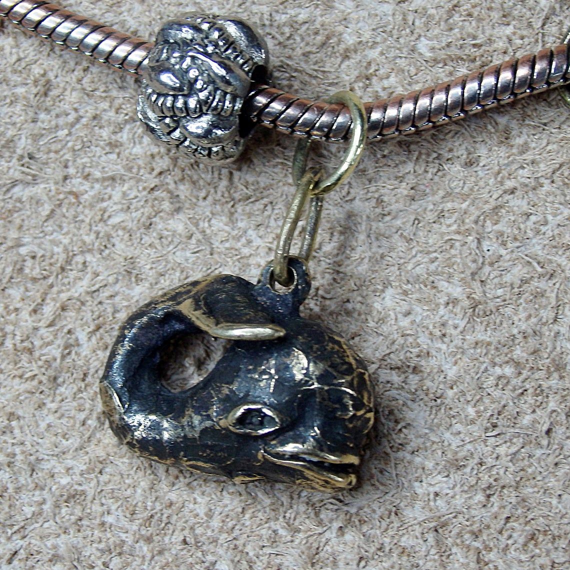 Small bronze pendant "Whale". This product can be used as a keychain or charm for bracelets and bags.