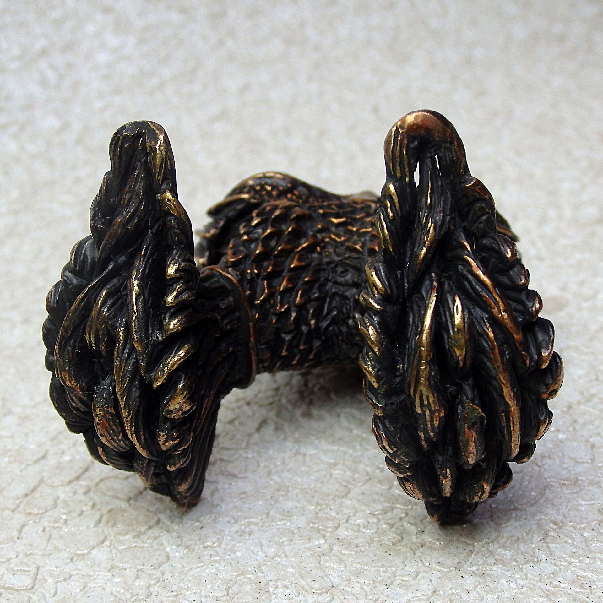 For the manufacture of this item has been hand carved model from wax. Then, using the lost vax method, a metal blank was cast, which was then installation, minted, ground and polished. Finally, the composition was engraved and blackened to get a unique vintage look.