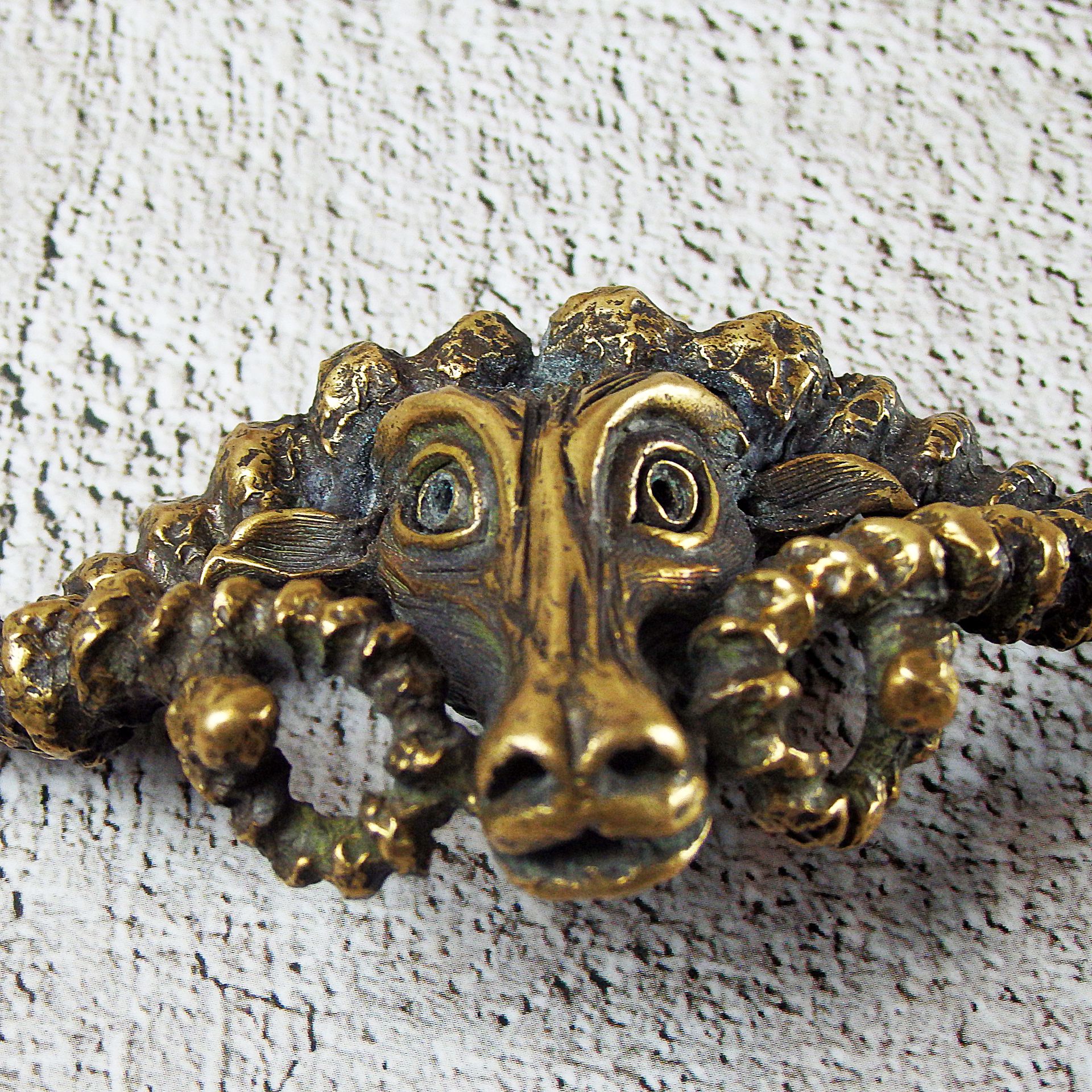 For the manufacture of this item has been hand carved model from wax. Then, using the lost vax method, a metal blank was cast, which was then installation, minted, ground and polished. Finally, the composition was engraved and blackened to get a unique vintage look.