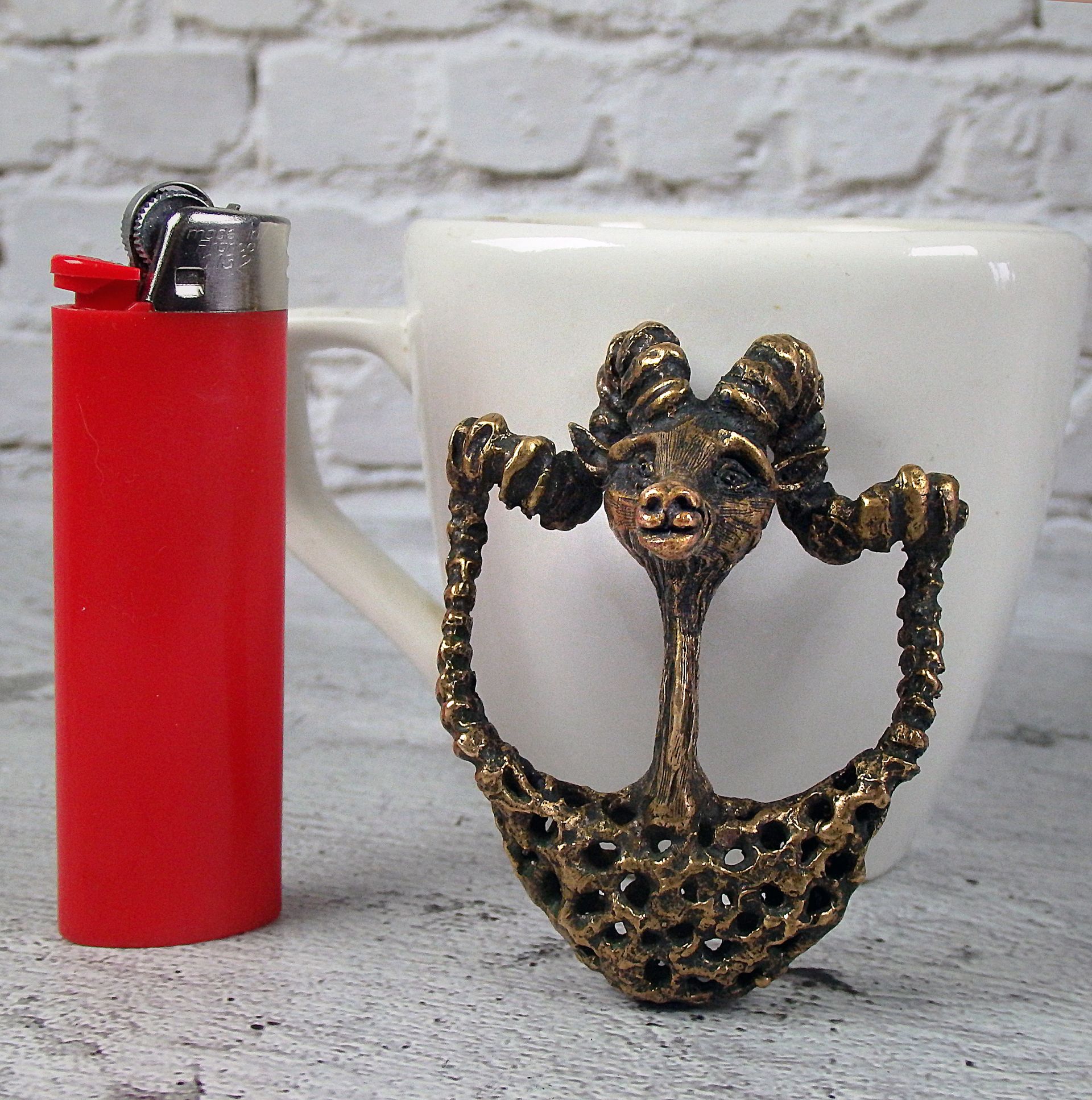 For the manufacture of this item has been hand carved model from wax. Then, using the lost vax method, a metal blank was cast, which was then installation, minted, ground and polished. Finally, the composition was engraved and blackened to get a unique vintage look.