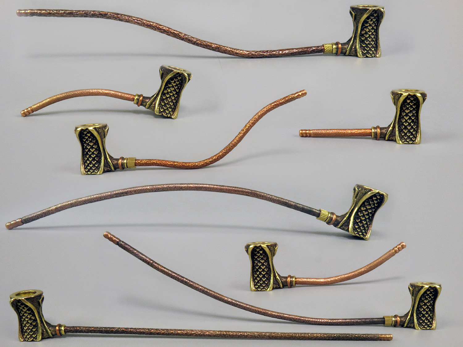 The mouthpiece is made of copper, it is screwed on, can have a length (from 3 to 30 cm) and a shape at the request of the buyer.