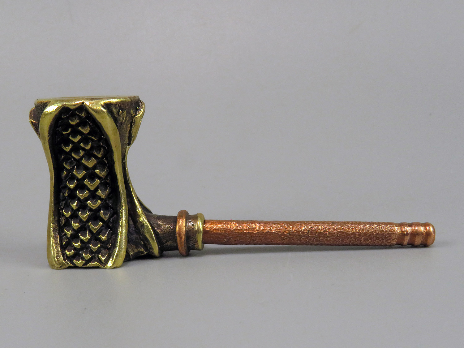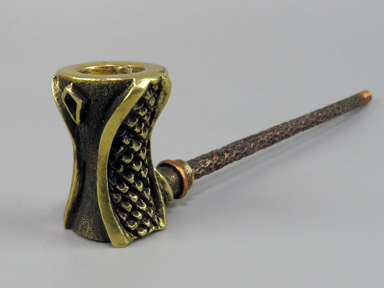 The pipe is made by hand (without using computer technology) from bronze according to the author's sketch.