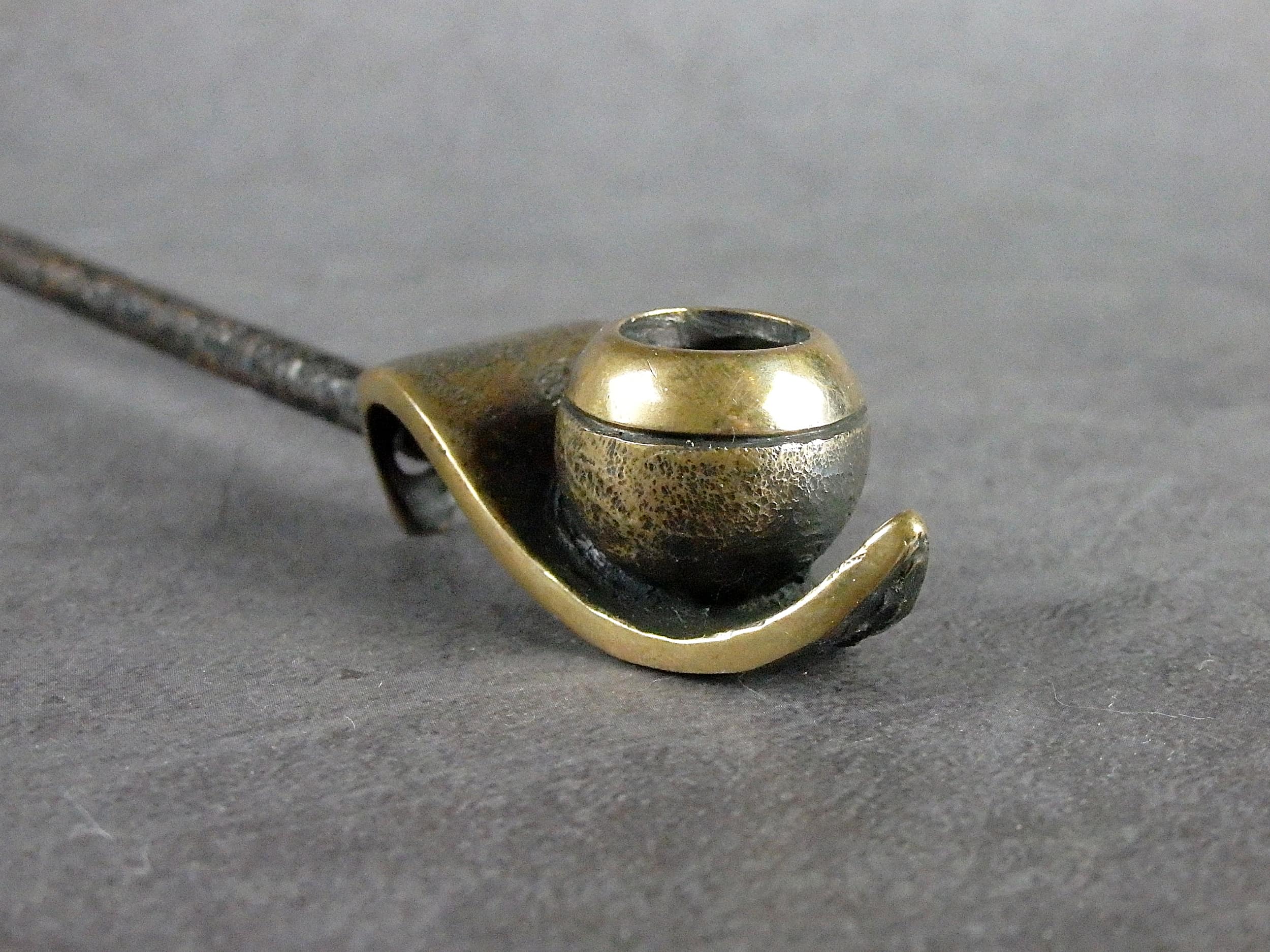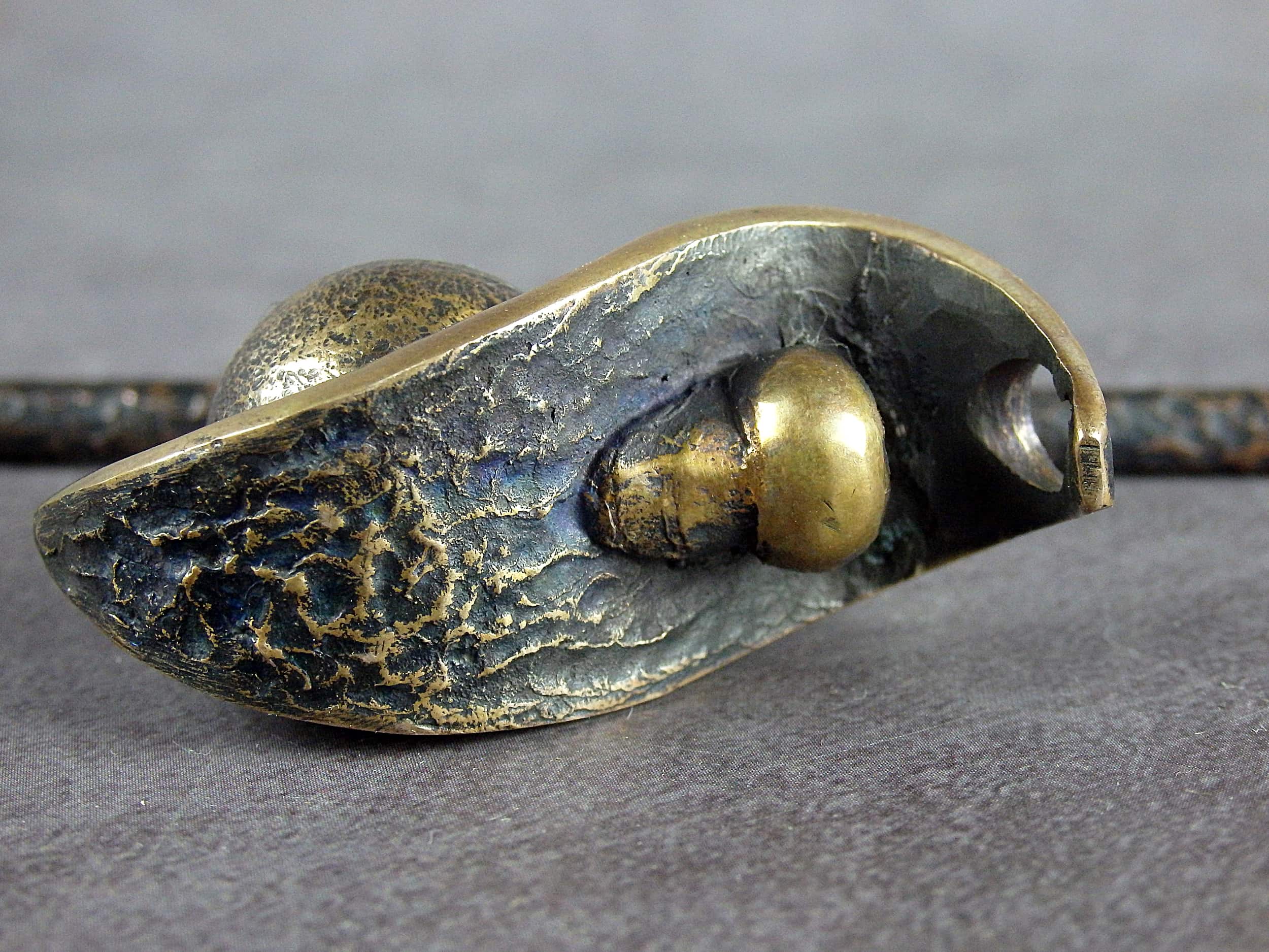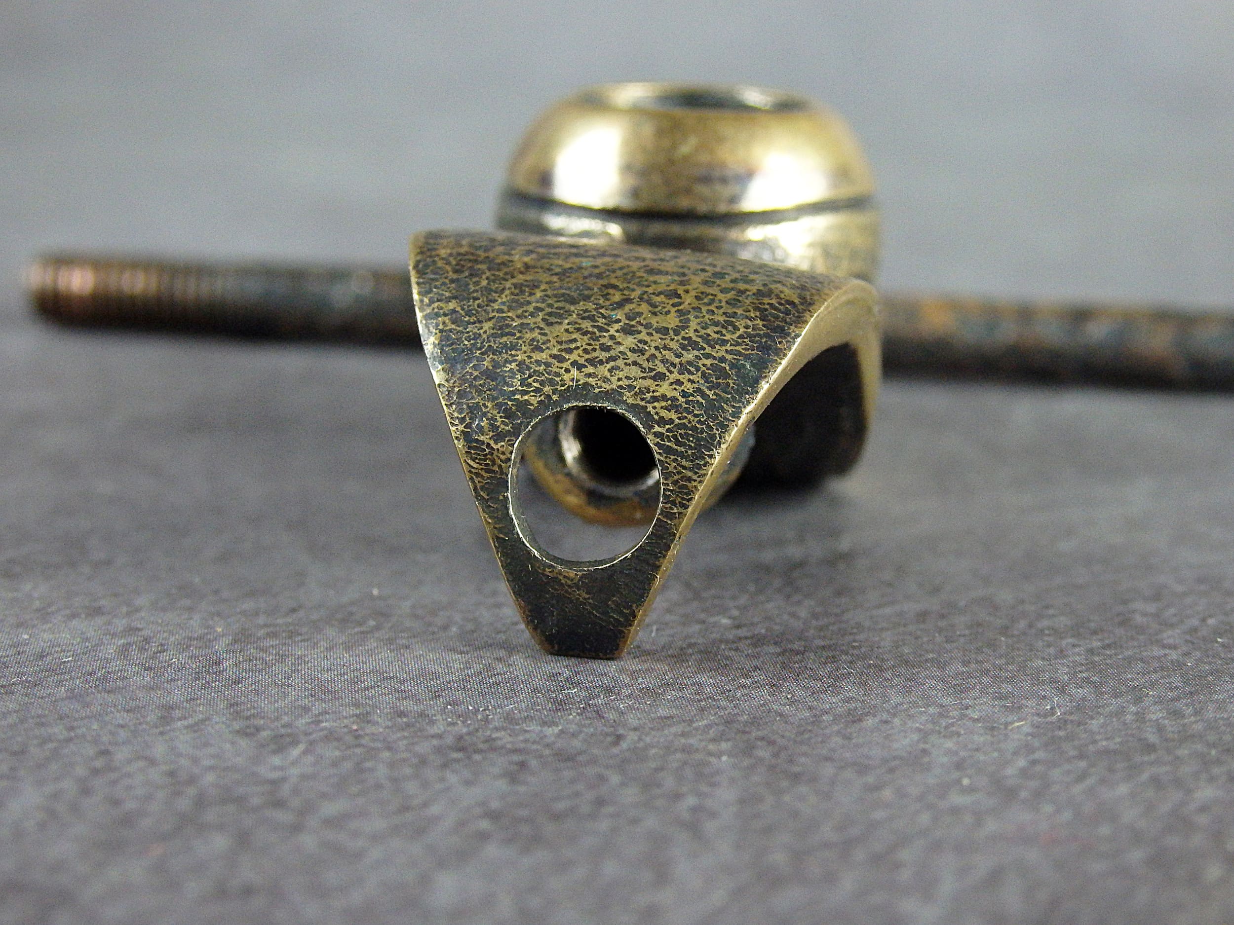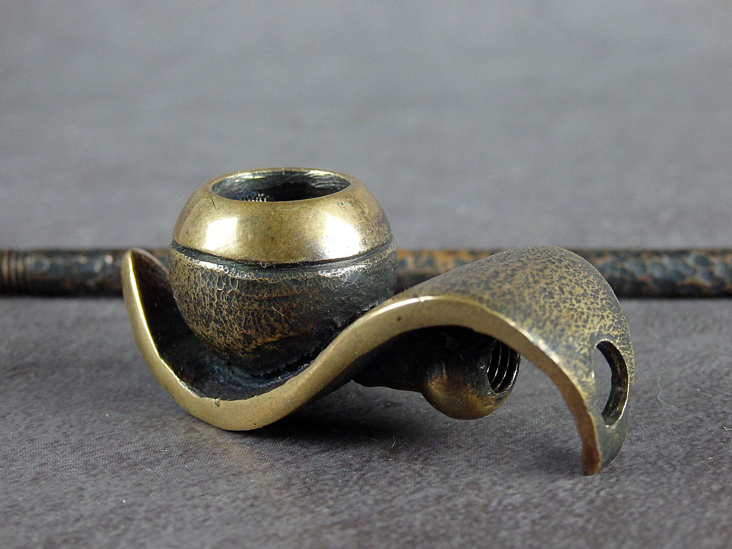 To make this item, a wax model was cut out by hand. Then, using the lost wax method, bronze parts were cast.
