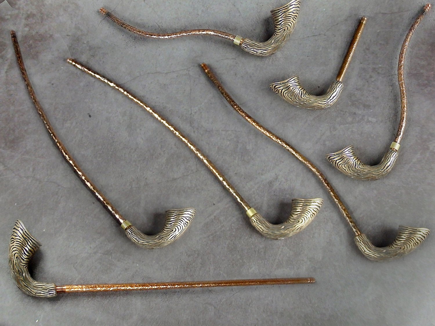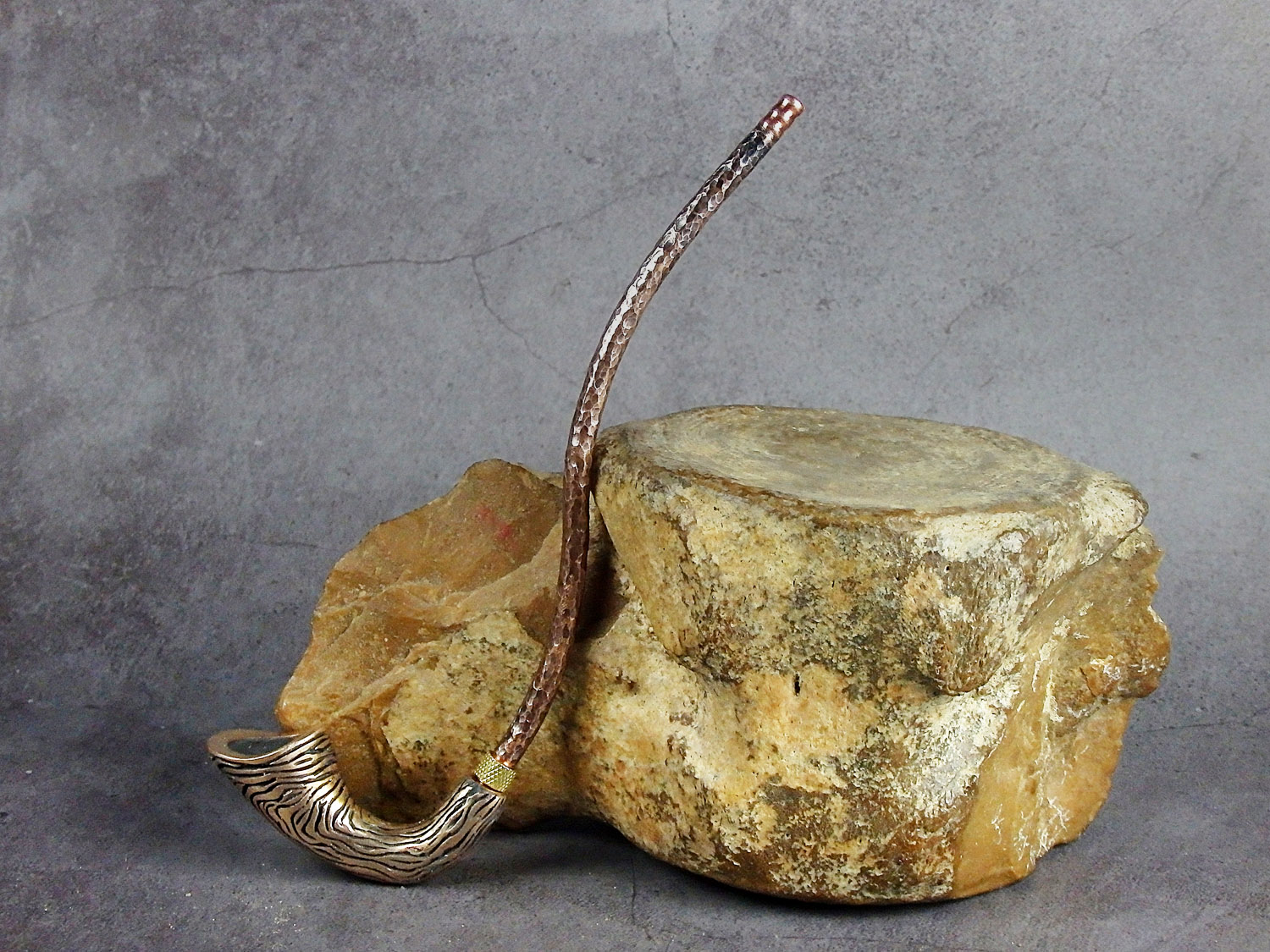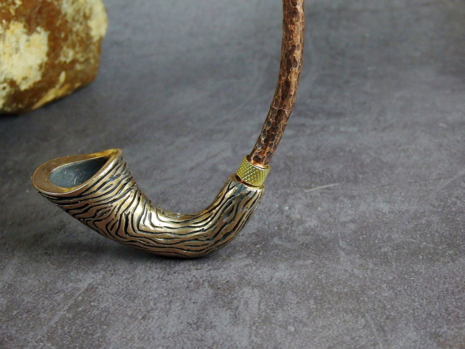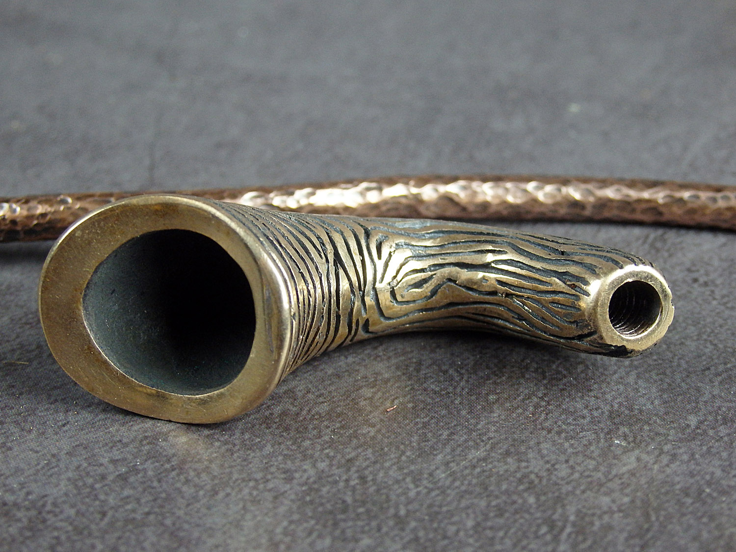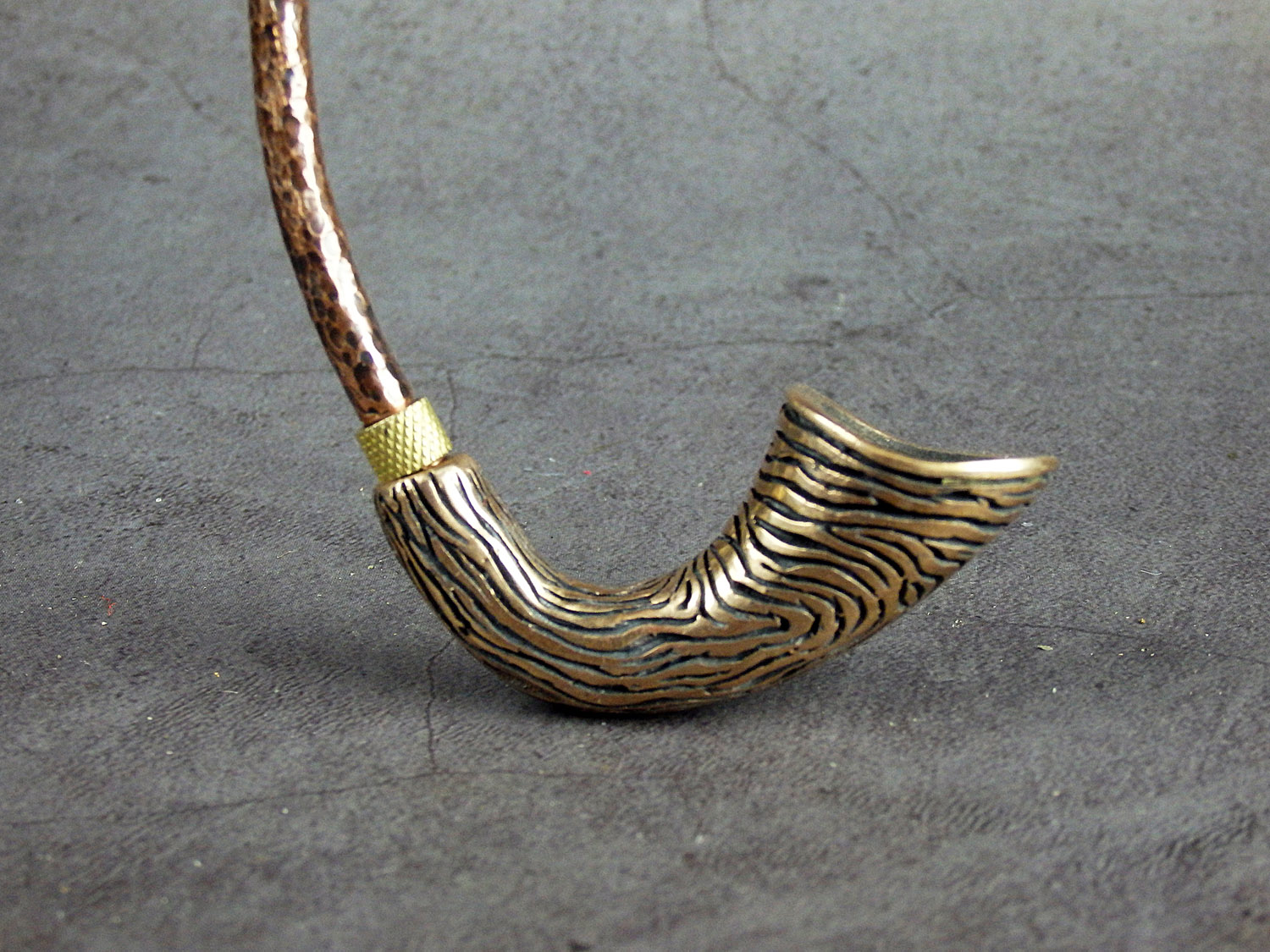 Churchwarden bronze pipe unusual curved shape. The mouthpiece is made of copper, it is screwed on, can have a length (from 5 to 30 cm) and a shape at the request of the buyer. The pipe is working, not decorative, the model is tested by the master.