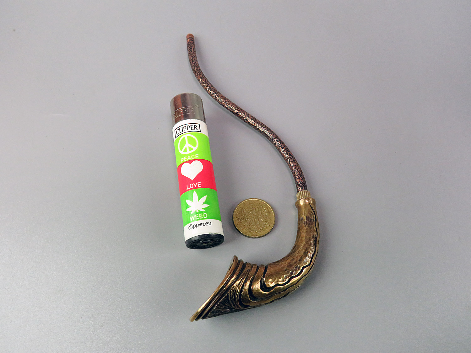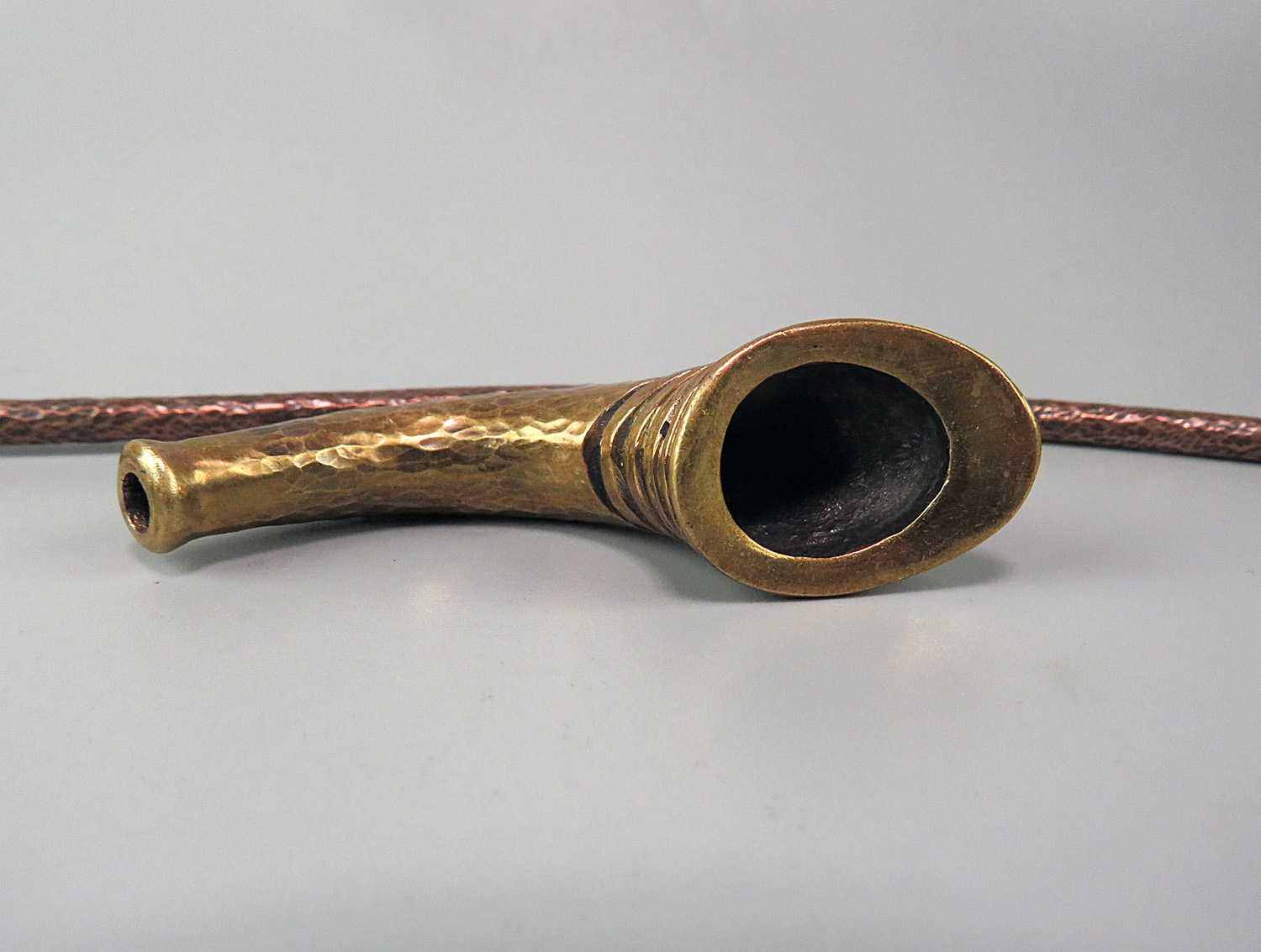 Churchwarden bronze pipe unusual curved shape. The mouthpiece is made of copper, it is screwed on, can have a length (from 5 to 30 cm) and a shape at the request of the buyer. The pipe is working, not decorative, the model is tested by the master.