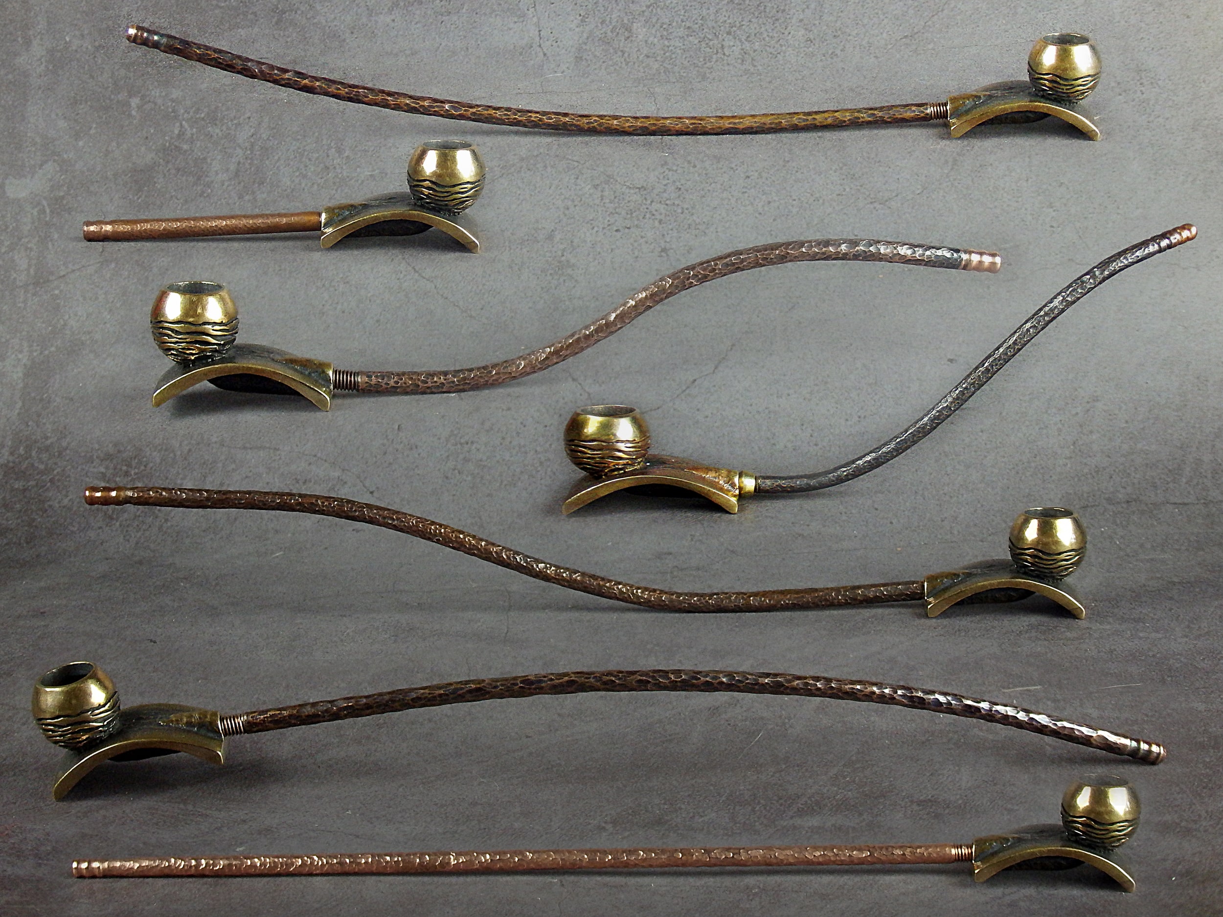A unique pipe in the form of a designer calabash - containers for mate. The mouthpiece is made of copper, it is screwed on, can have a length (from 3 to 30 cm) and a shape at the request of the buyer. The pipe is working, not decorative, the model is tested by the master.