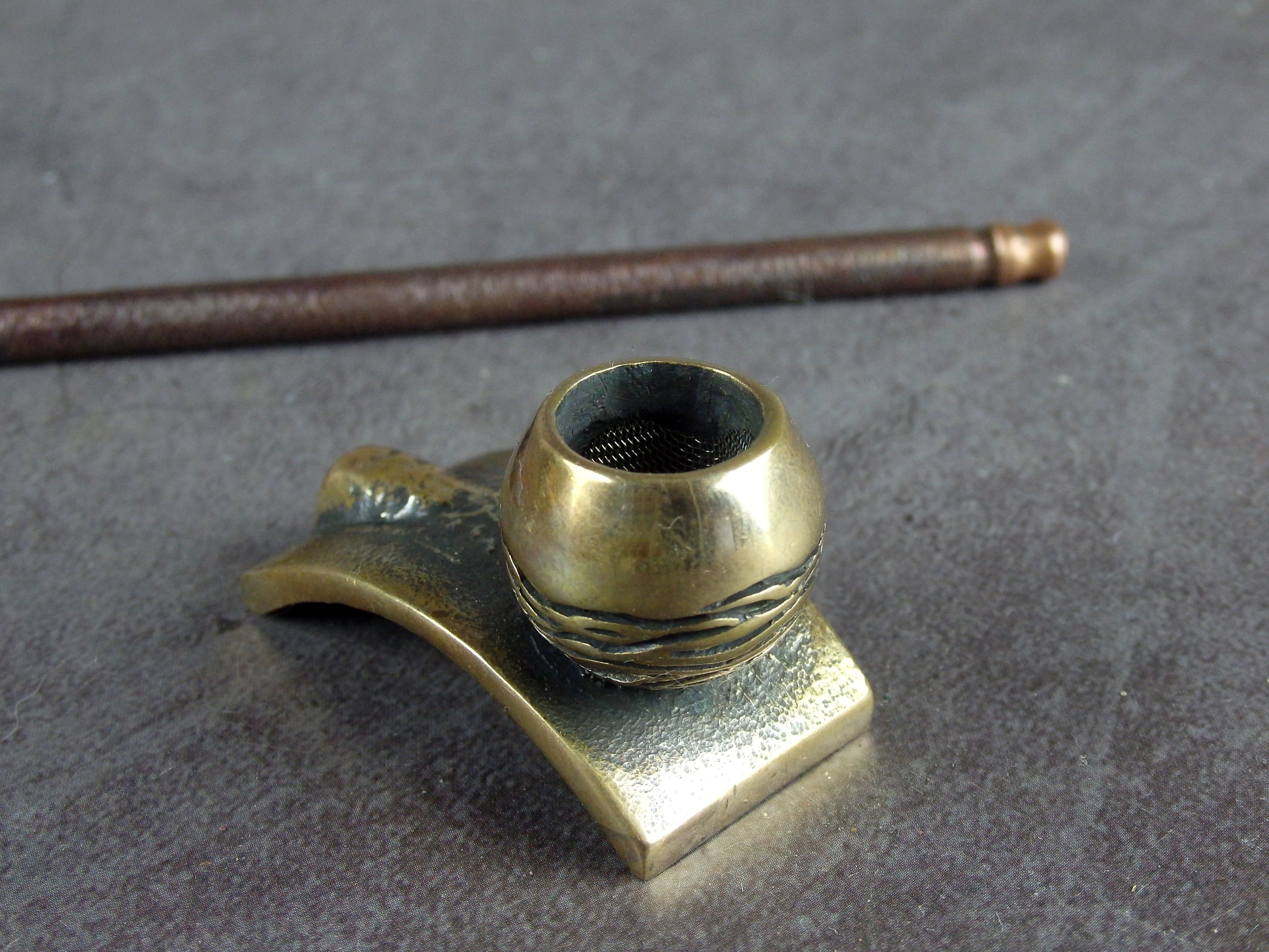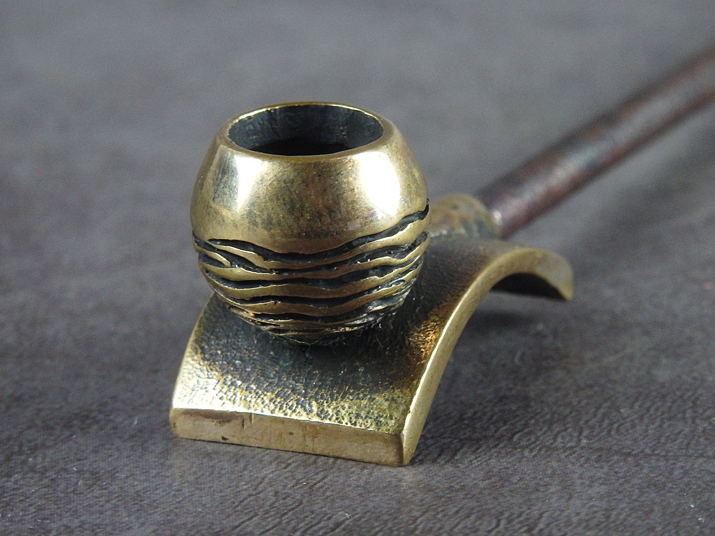 To make this item, a wax model was cut out by hand. Then, using the lost wax method, bronze parts were cast.