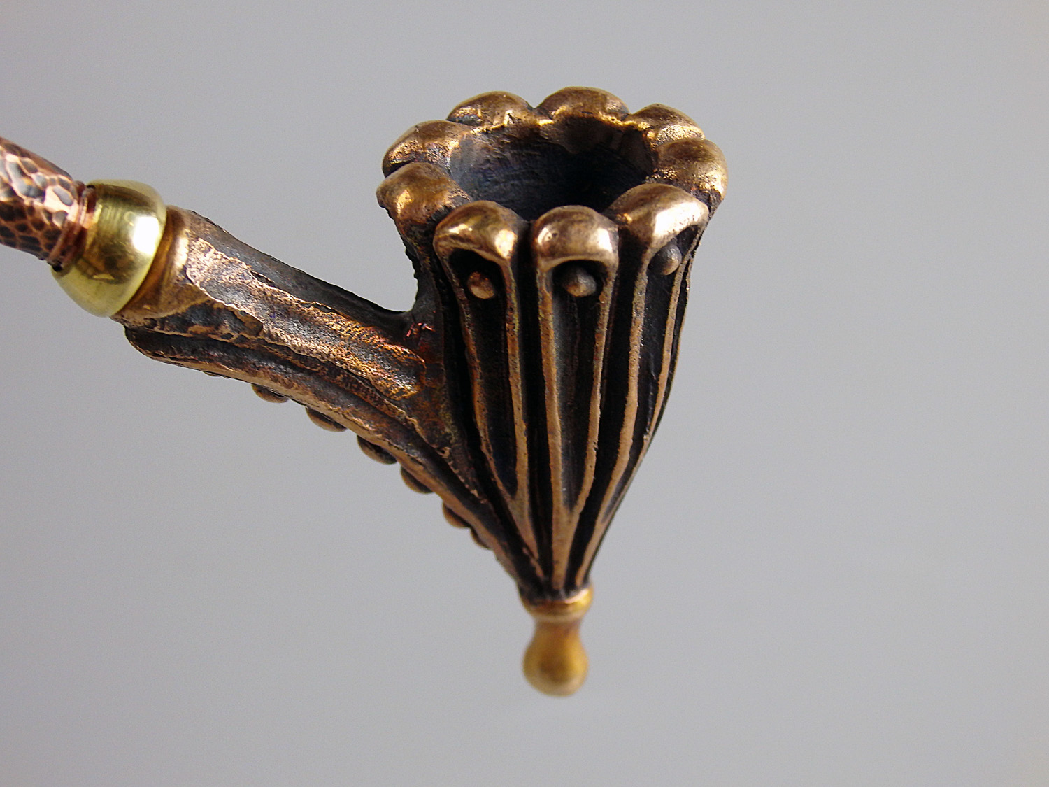 Freehand churchwarden bronze pipe. The mouthpiece is made of copper, it is screwed on, can have a length (from 5 to 30 cm) and a shape at the request of the buyer. The pipe is working, not decorative, the model is tested by the master.
