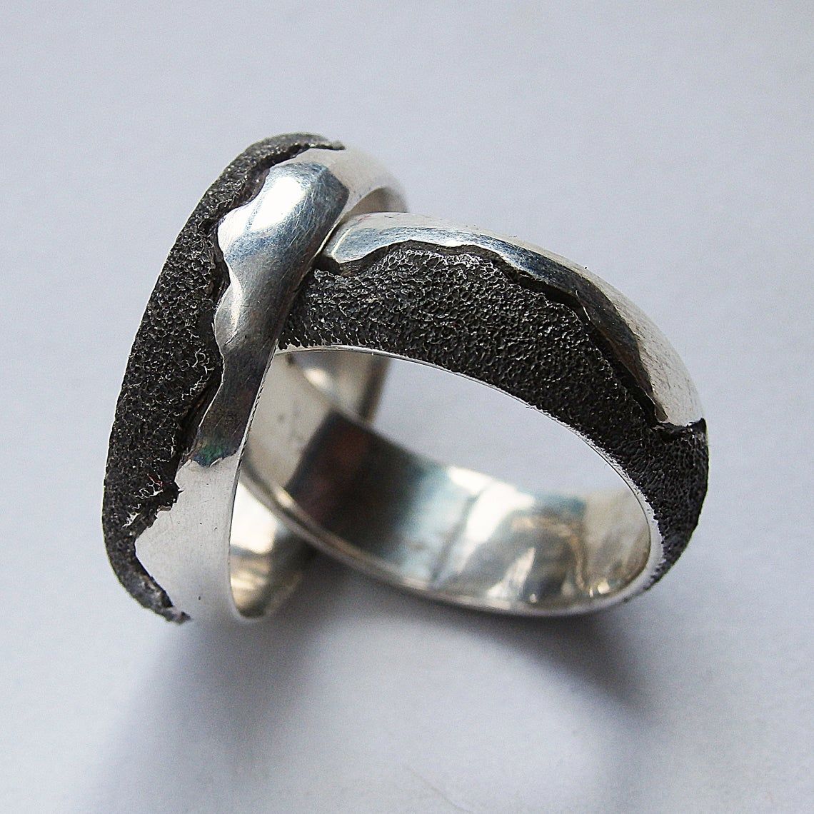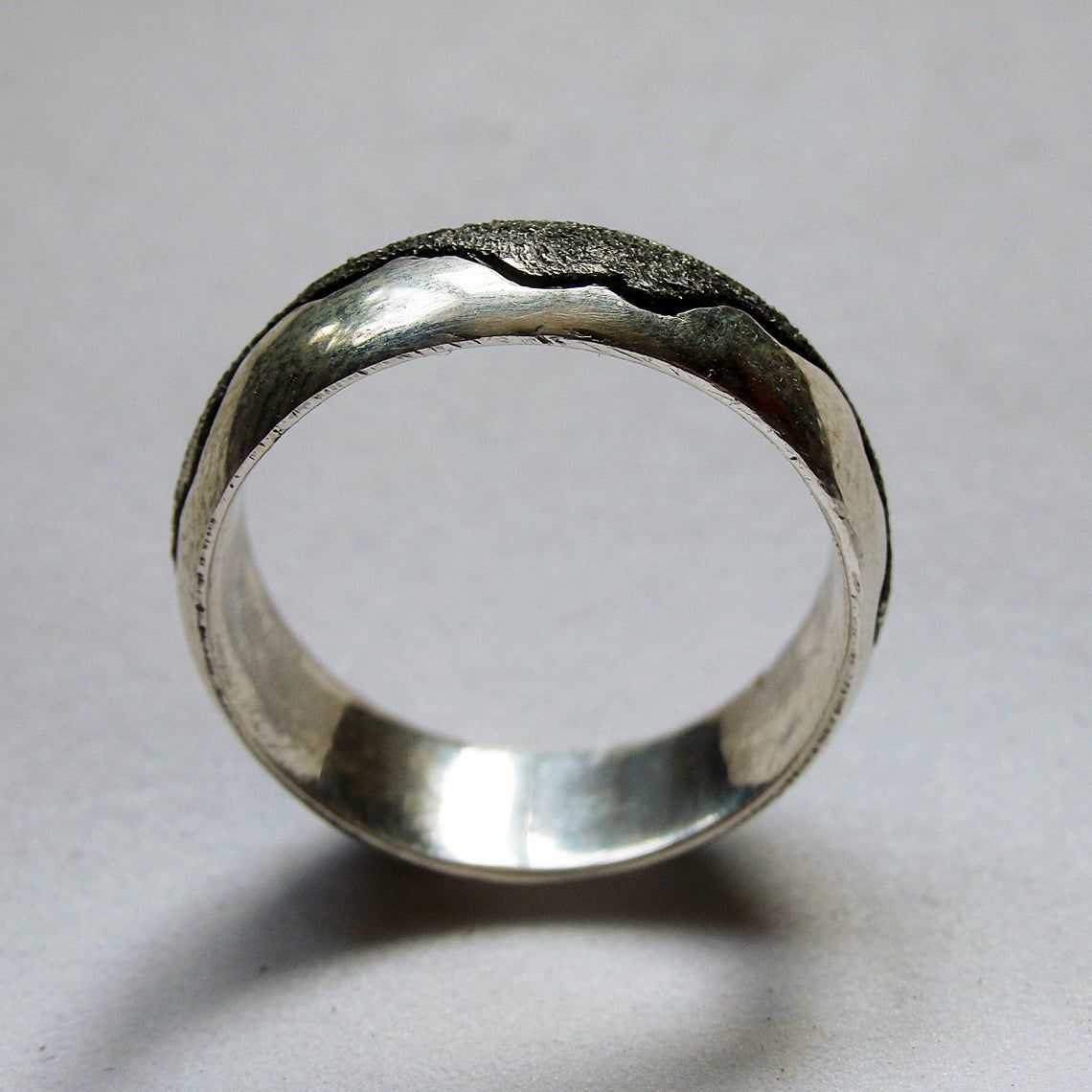 Elegant casual ring in ordinary and blackened silver. This ring will be made especially for you and manually, not replicable, so it will be unique and only for you.