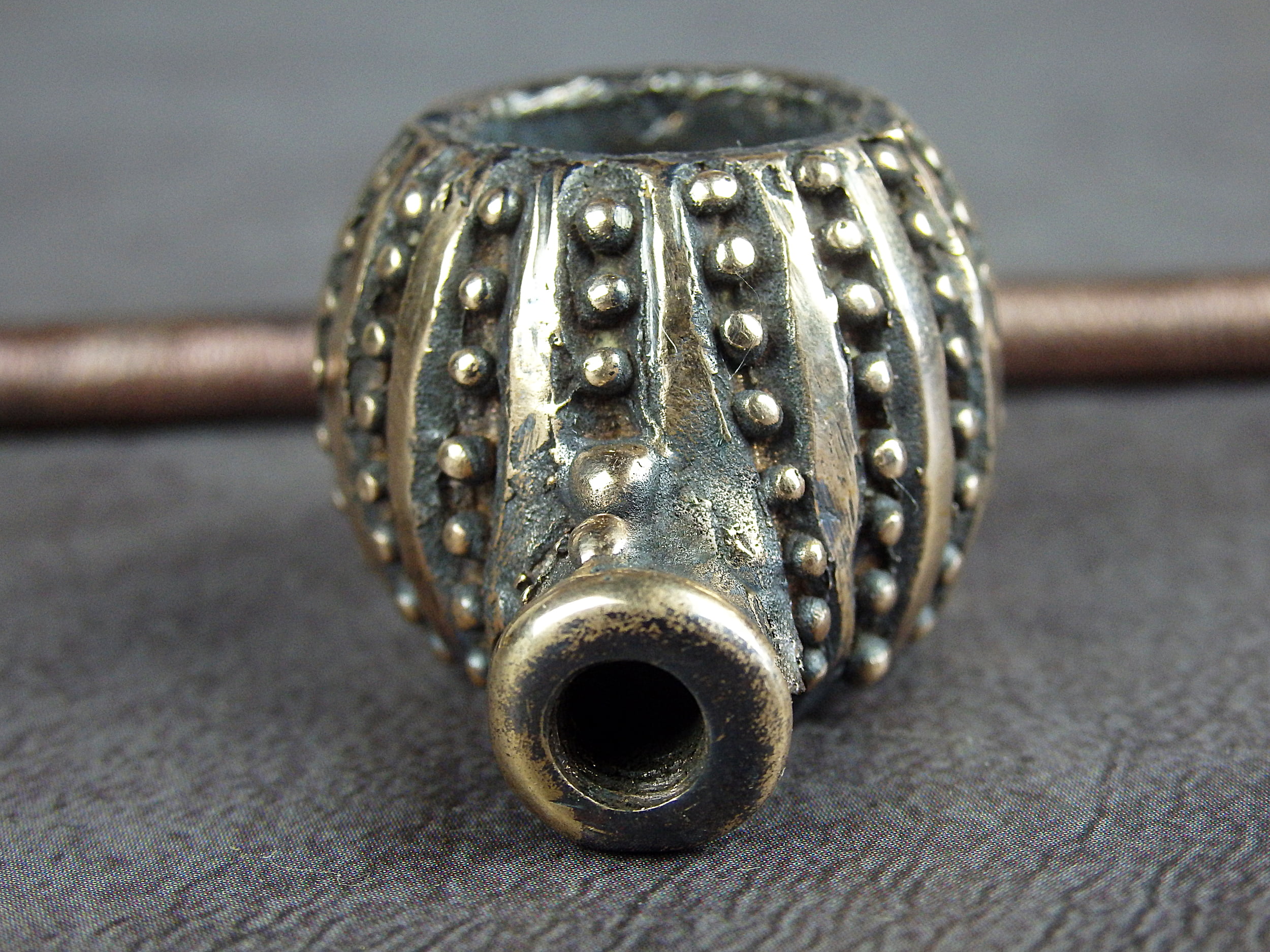 To make this item, a wax model was cut out by hand. Then, using the lost wax method, bronze parts were cast.