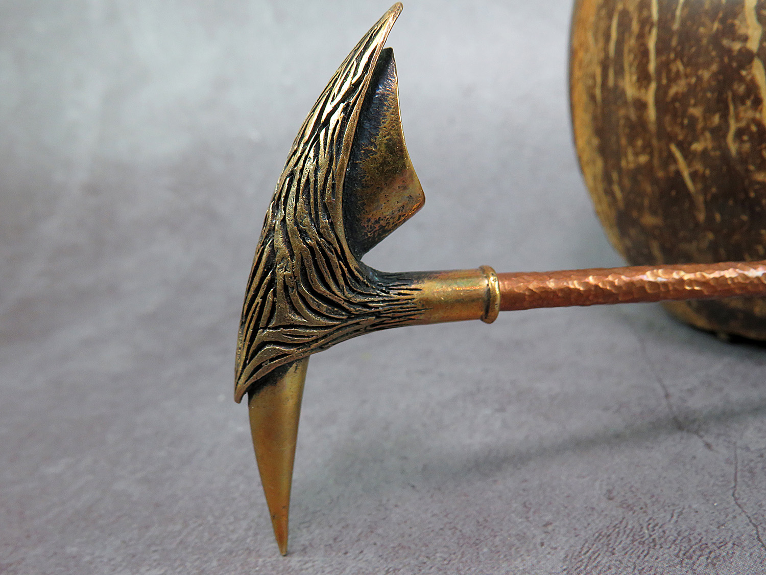The pipe is made by hand (without using computer technology) from bronze according to the author's sketch.