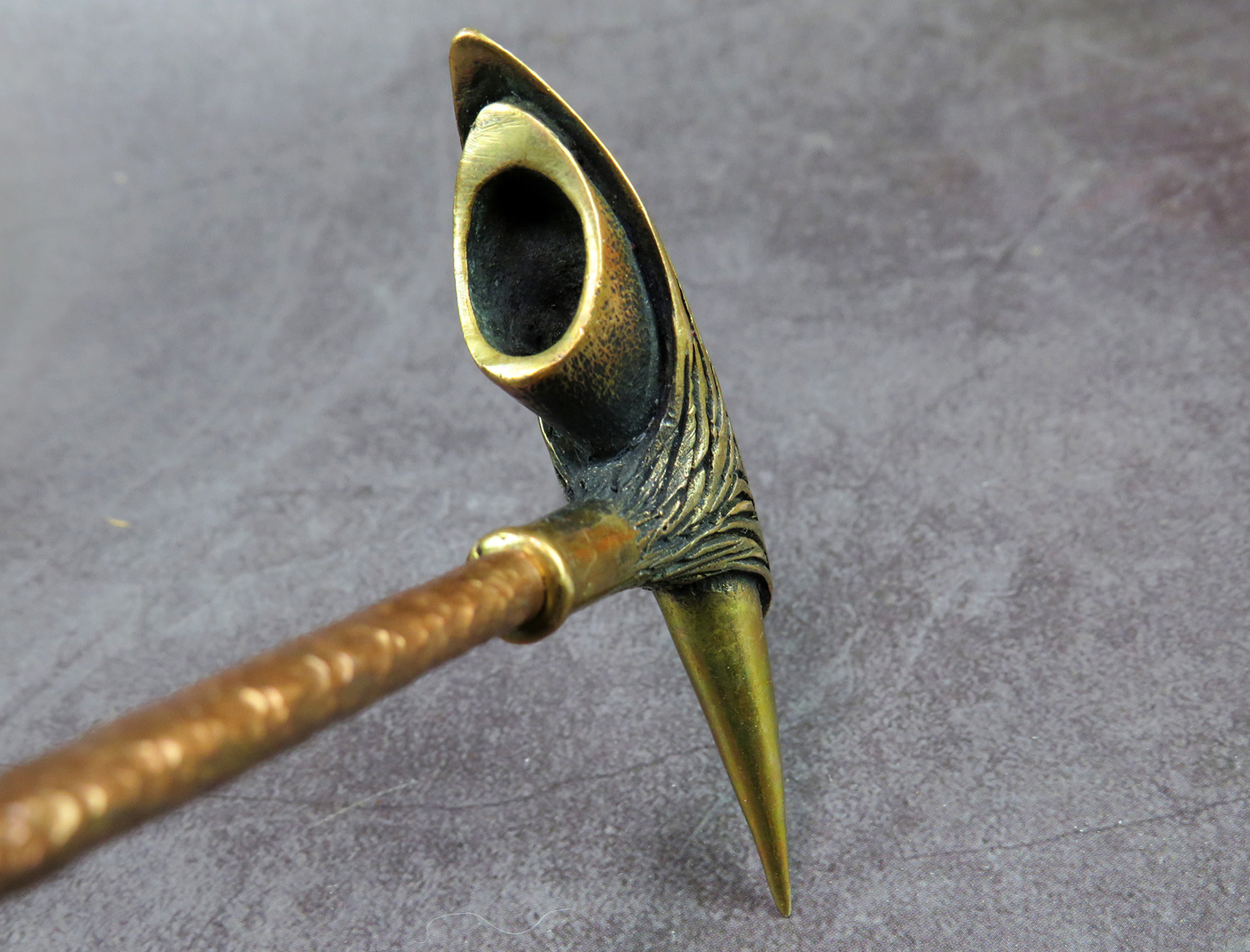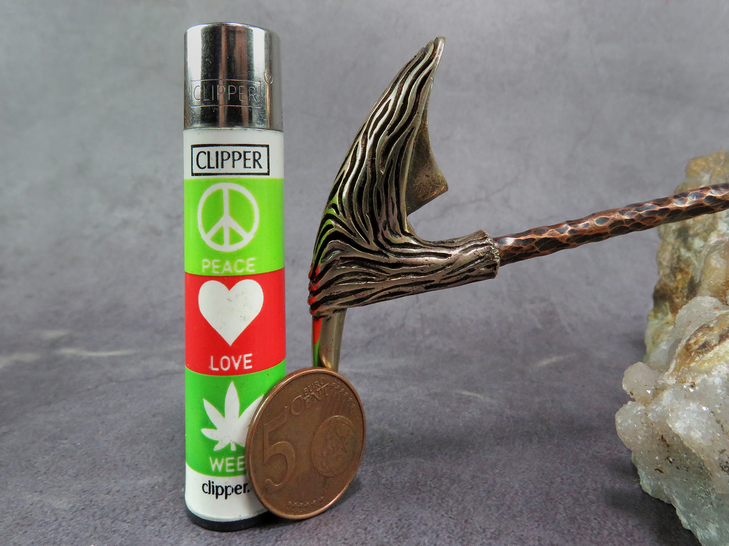 Unusual churchwarden bronze pipe in archaic style. The mouthpiece is made of copper, it is screwed on, can have a length (from 5 to 30 cm) and a shape at the request of the buyer. The pipe is working, not decorative, the model is tested by the master.