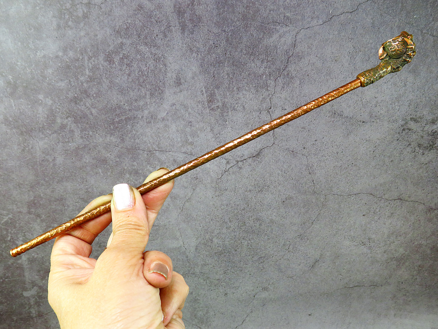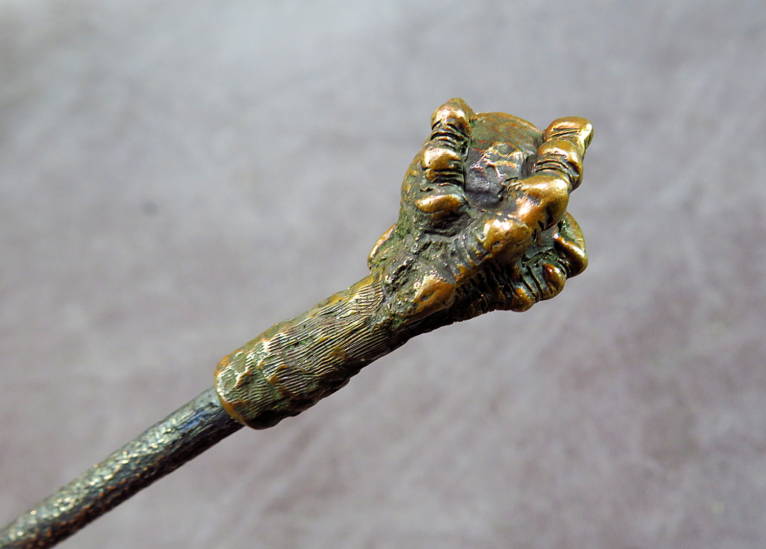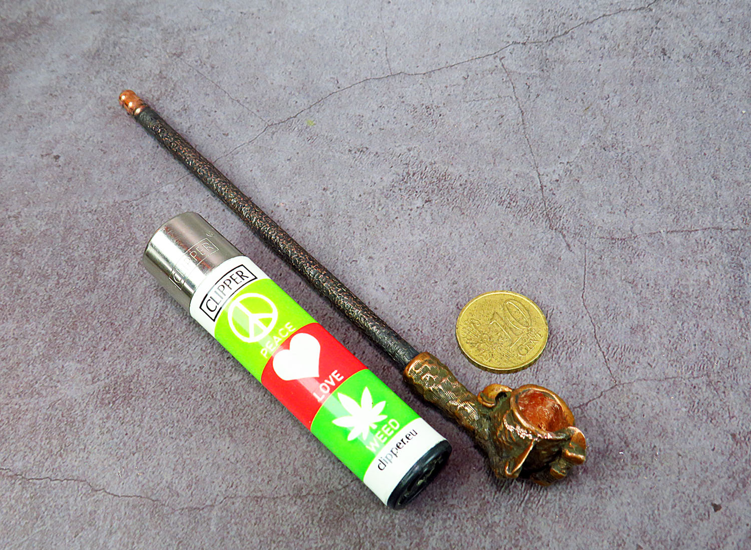 Small bronze smoking pipe with a bowl in the shape clawed paw that holds the pot. The mouthpiece is made of copper, it is screwed on, can have a length (from 3 to 30 cm) and a shape at the request of the buyer. The pipe is working, not decorative, the model is tested by the master.