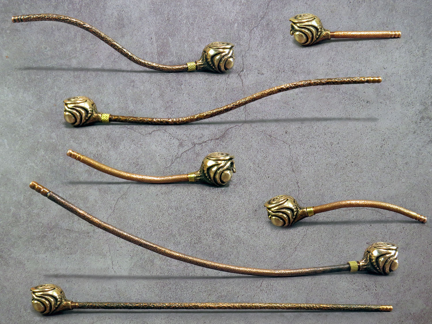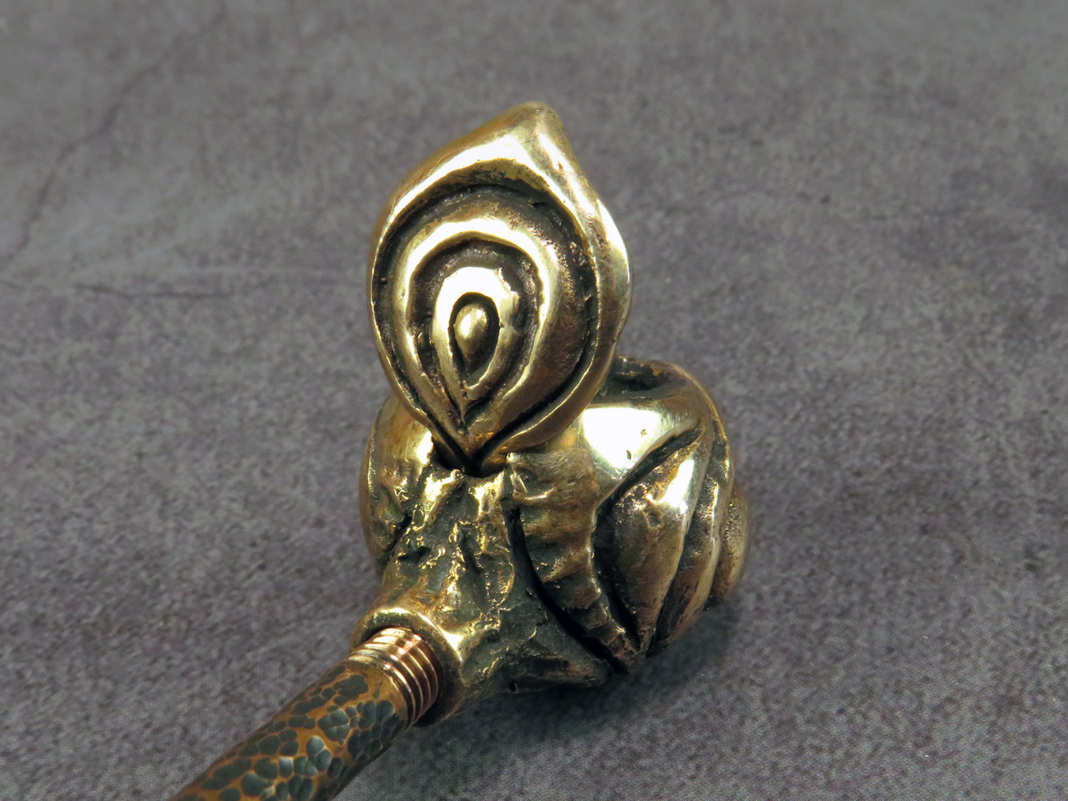 The pipe is made by hand (without using computer technology) from bronze according to the author's sketch.