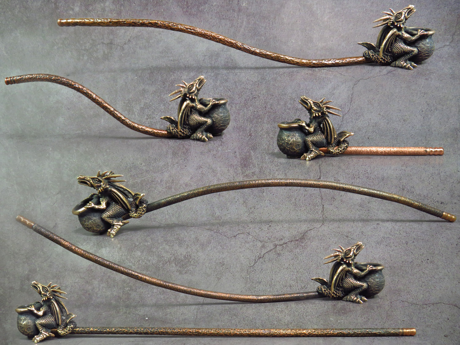 The mouthpiece is made of copper, it is screwed on, can have a length (from 3 to 30 cm) and a shape at the request of the buyer. The pipe is working, not decorative, the model is tested by the master.