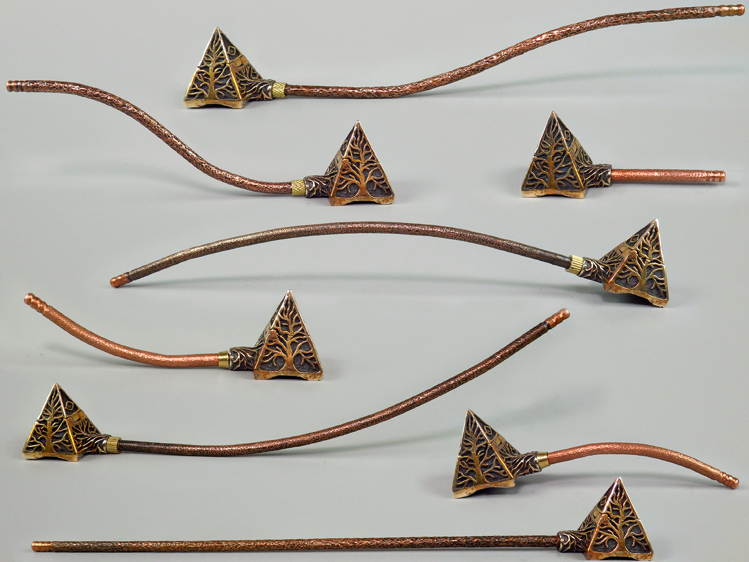 The mouthpiece is made of copper, it is screwed on, can have a length (from 3 to 30 cm) and a shape at the request of the buyer.