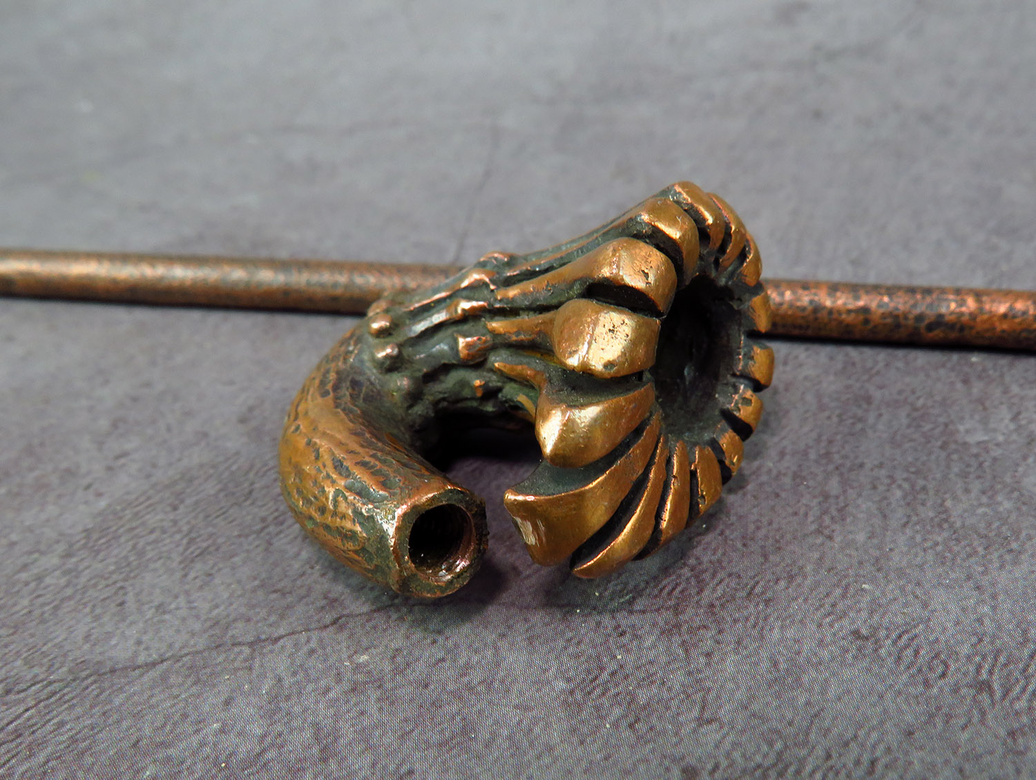 The pipe is made by hand (without using computer technology) from bronze according to the author's sketch.