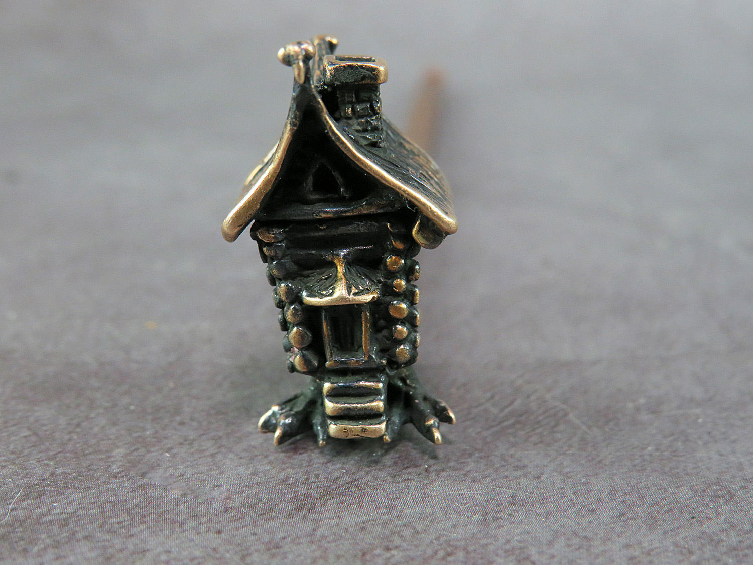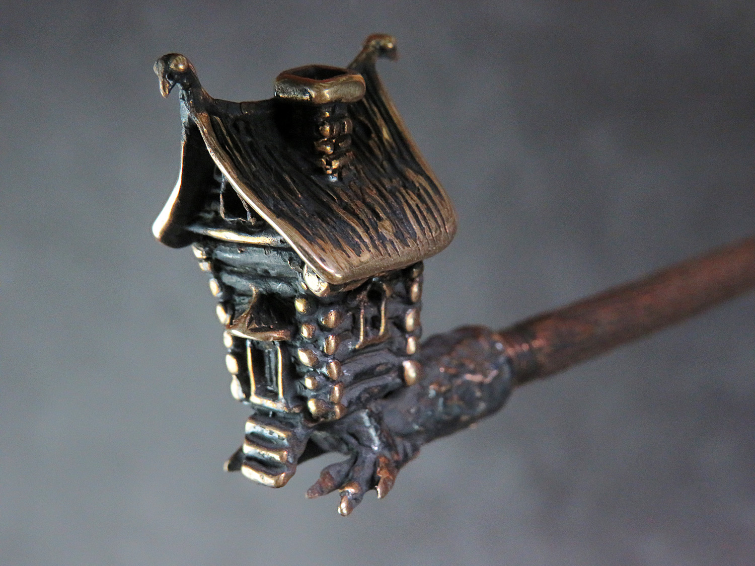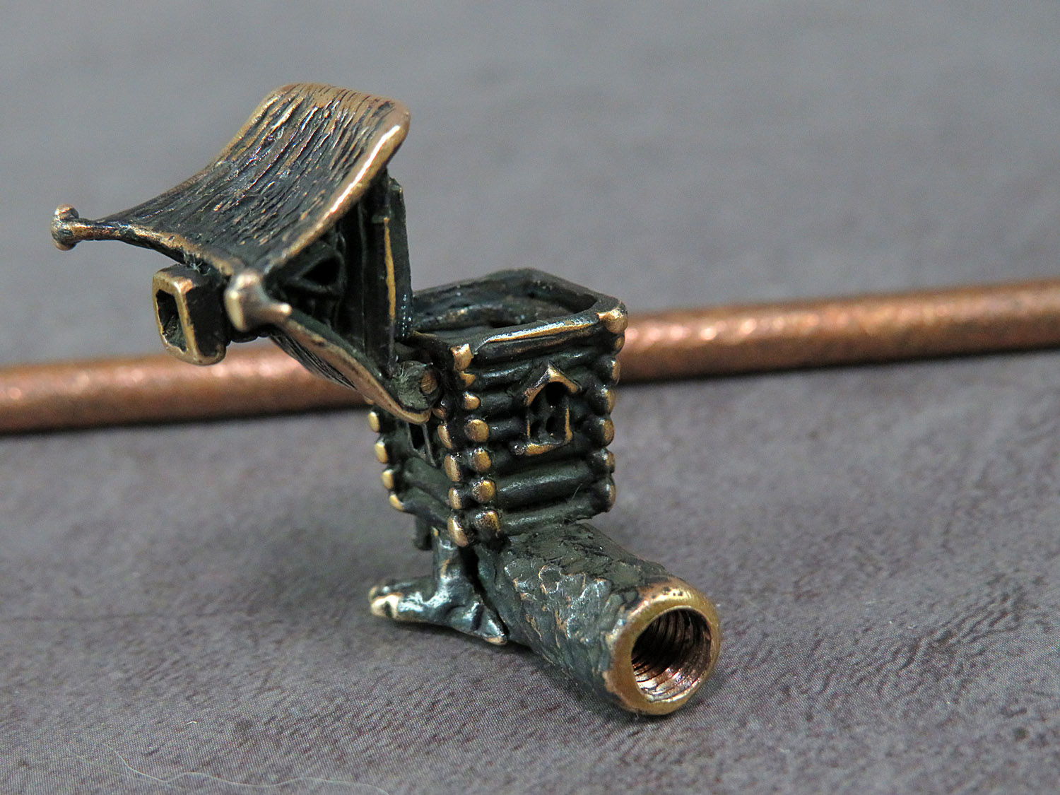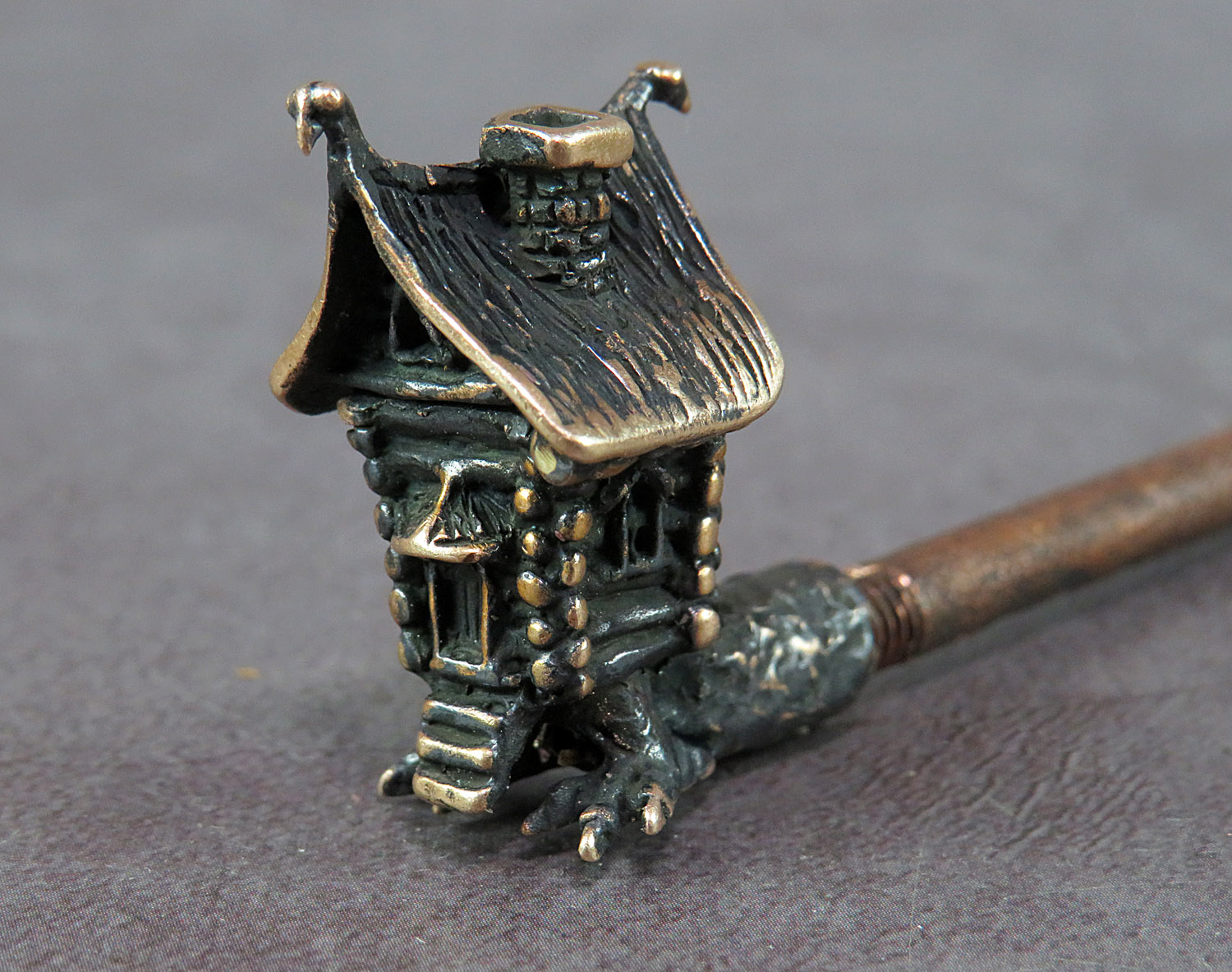 Bronze smoking pipe with a bowl in the shape of a magical hut from Slavic folk tales - Baba Yaga's house.