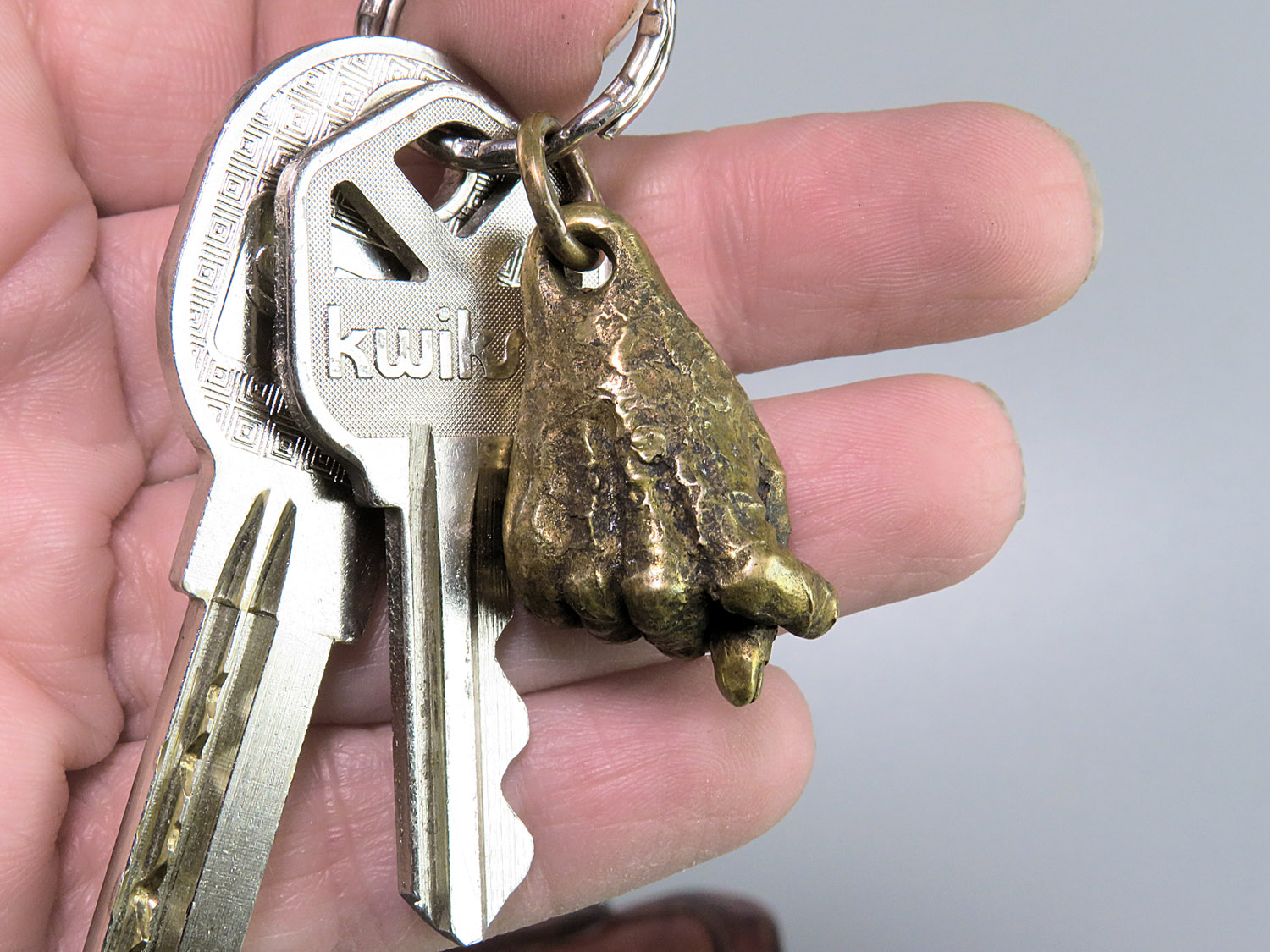 Bronze keychain in the form of a fig sign, a very versatile sign that means something different in different cultures, but always on the verge of decency.