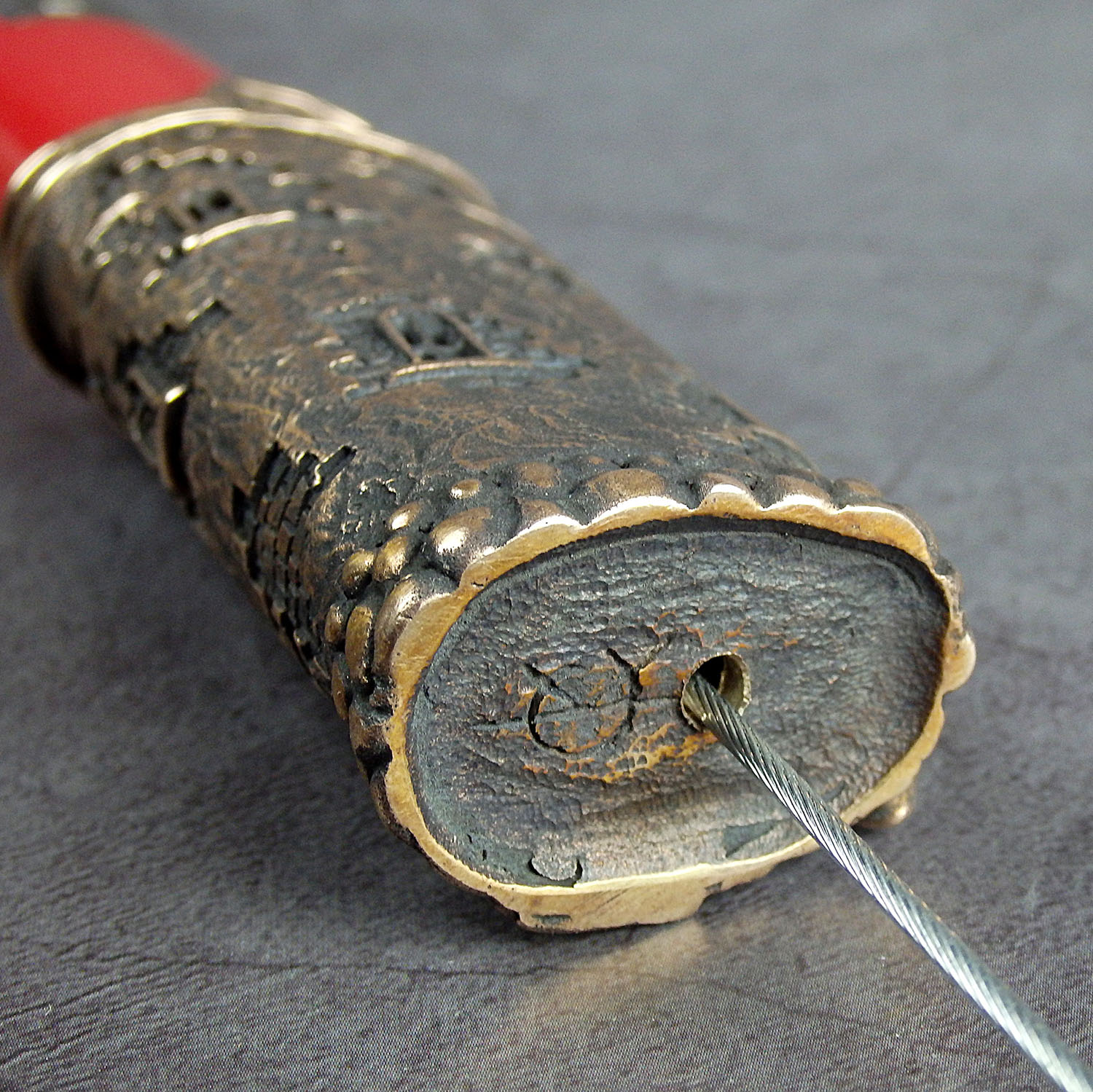 To pull out the lighter, it must be pushed out of the case with a knitting needle (or something similar) through the hole in the bottom.