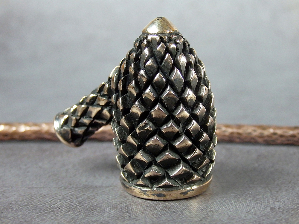 Churchwarden bronze pipe bowl in the shape of fir cone. The mouthpiece is made of copper, it is screwed on, can have a length (from 5 to 30 cm) and a shape at the request of the buyer. The pipe is working, not decorative, the model is tested by the master.