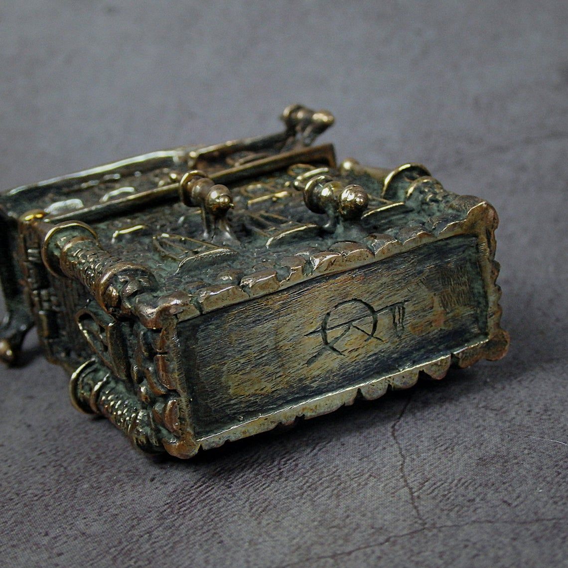 For the manufacture of this item has been hand carved model from wax. Then, using the lost vax method, a metal blank was cast, which was then installation, minted, ground and polished. Finally, the composition was engraved and blackened to get a unique vintage look.