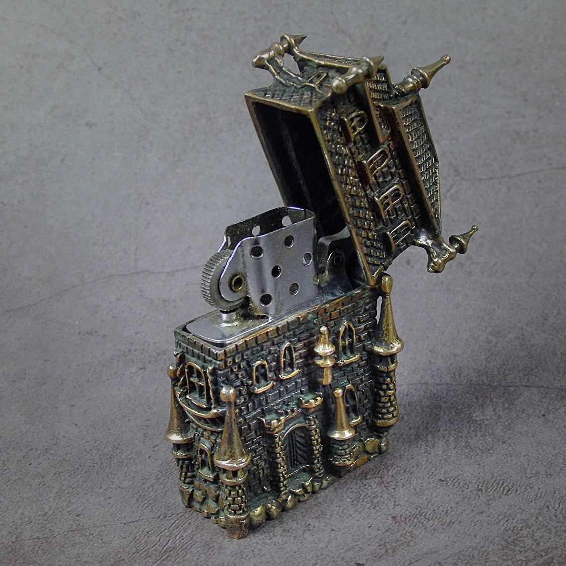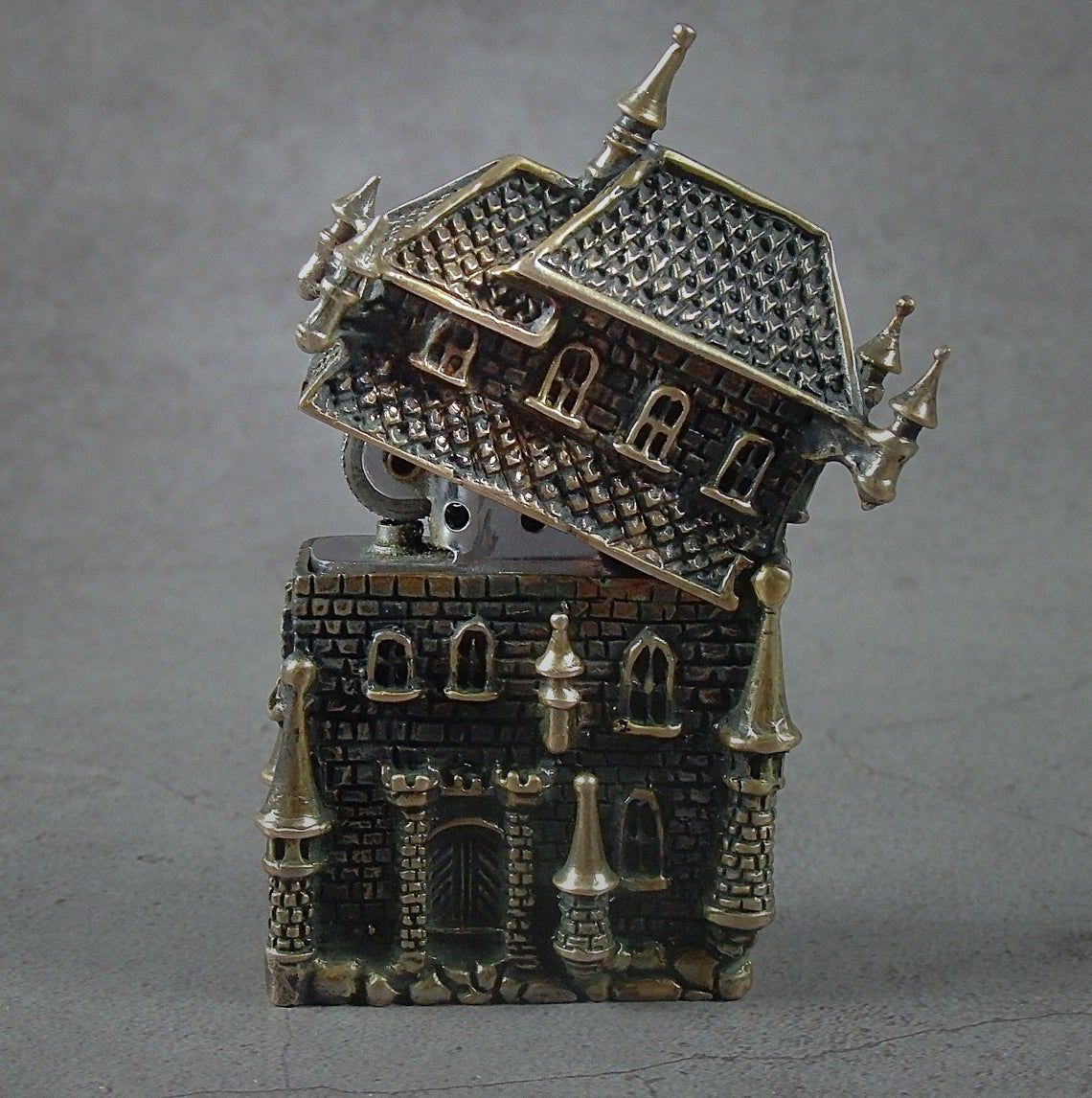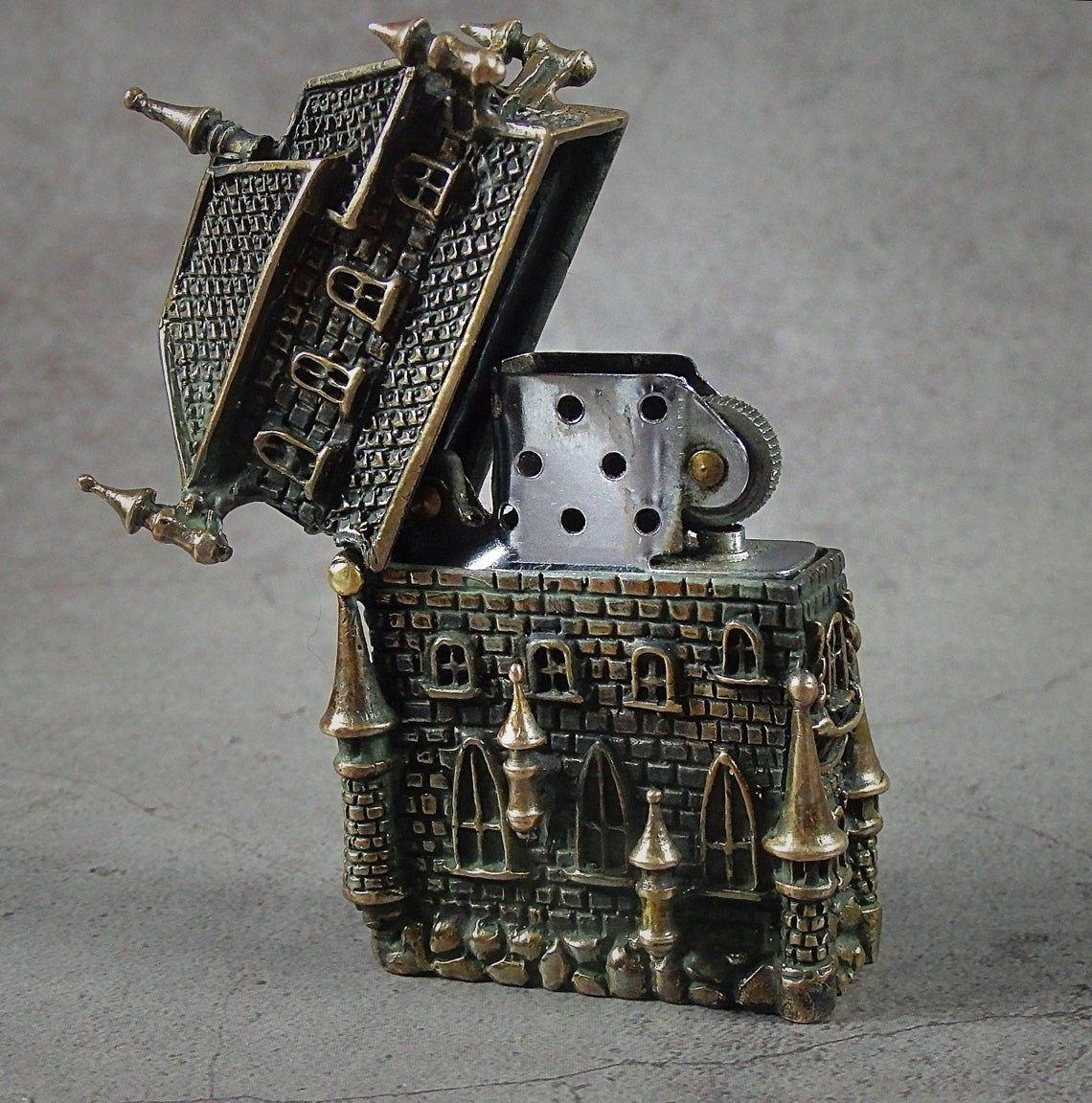 Gas lighter cover in the shape of an old Gothic house. The cover is made so carefully that it is not only a smoking accessory, but also a wonderful souvenir. This will be a great theme gift for fans of role-playing games and lovers of the Middle Ages and Gothic.