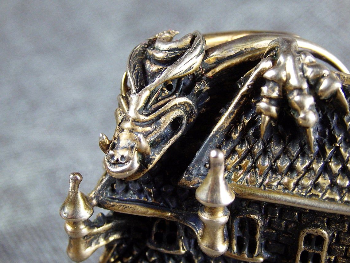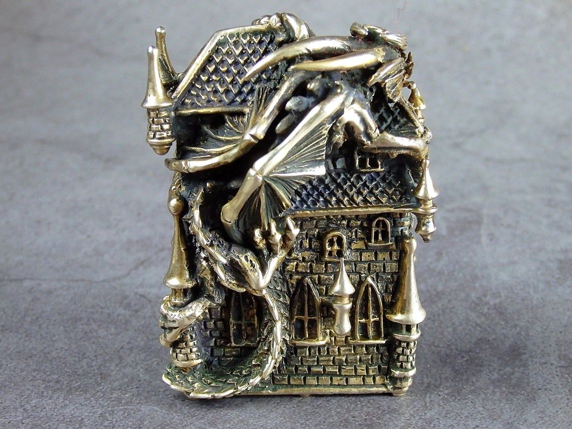 Gas lighter cover in the shape of an old house with a dragon on the roof. The cover is made so carefully that it is not only a smoking accessory, but also a wonderful souvenir. This will be a great theme gift for fans of role-playing games and lovers of the Middle Ages and Gothic.