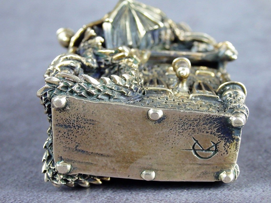 For the manufacture of this item has been hand carved model from wax. Then, using the lost vax method, a metal blank was cast, which was then installation, minted, ground and polished. Finally, the composition was engraved and blackened to get a unique vintage look.