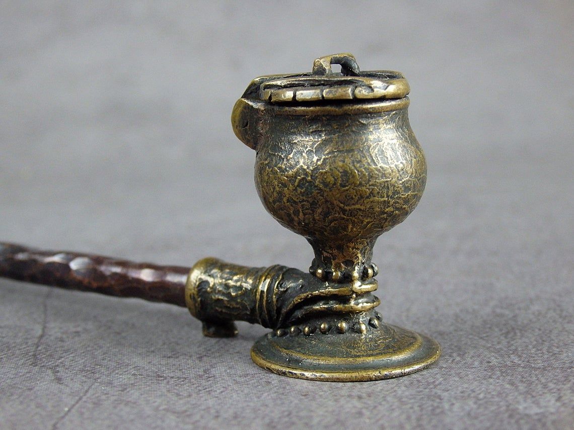 Handmade smoking pipe with lid. The mouthpiece is made of copper, it is screwed on, can have a length (from 3 to 30 cm) and a shape at the request of the buyer. The pipe is working, not decorative, the model is tested by the master.