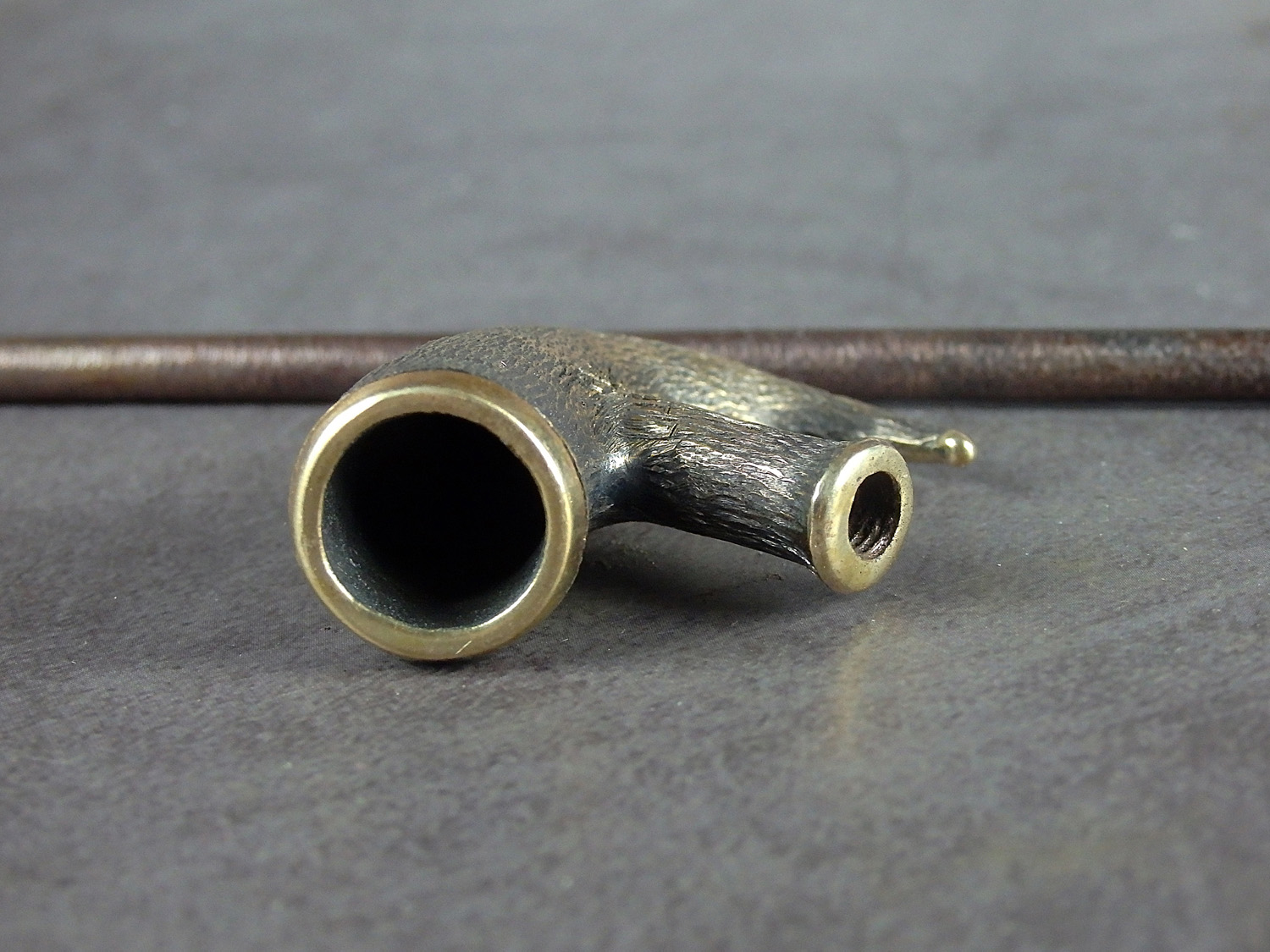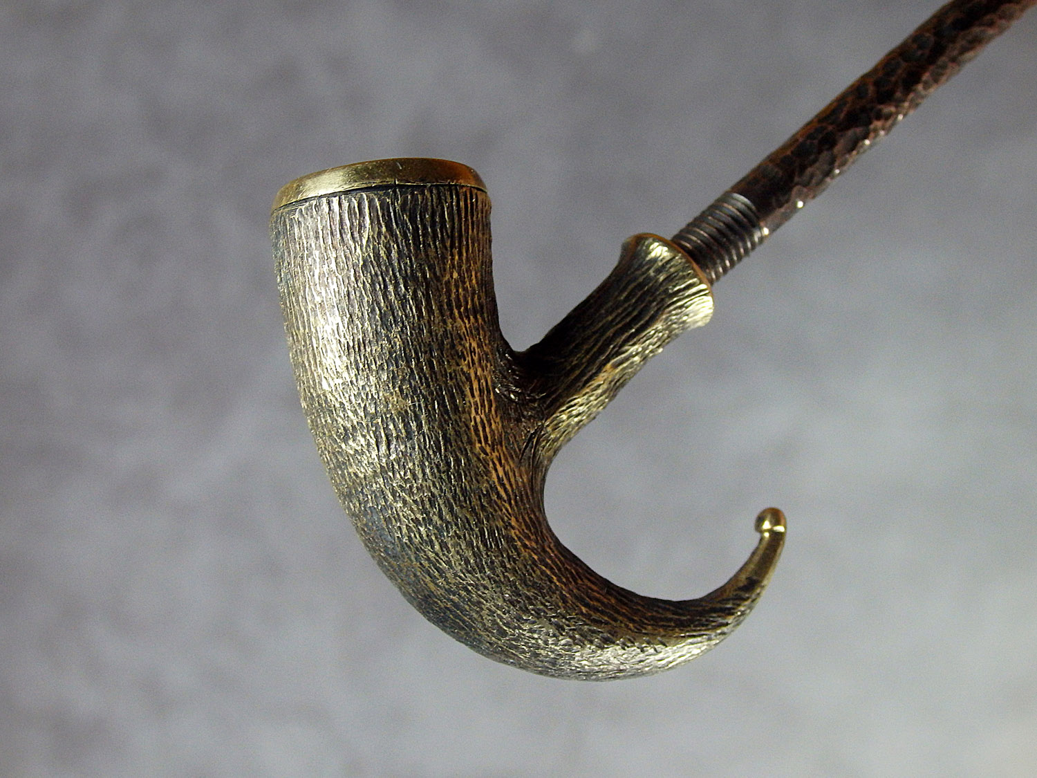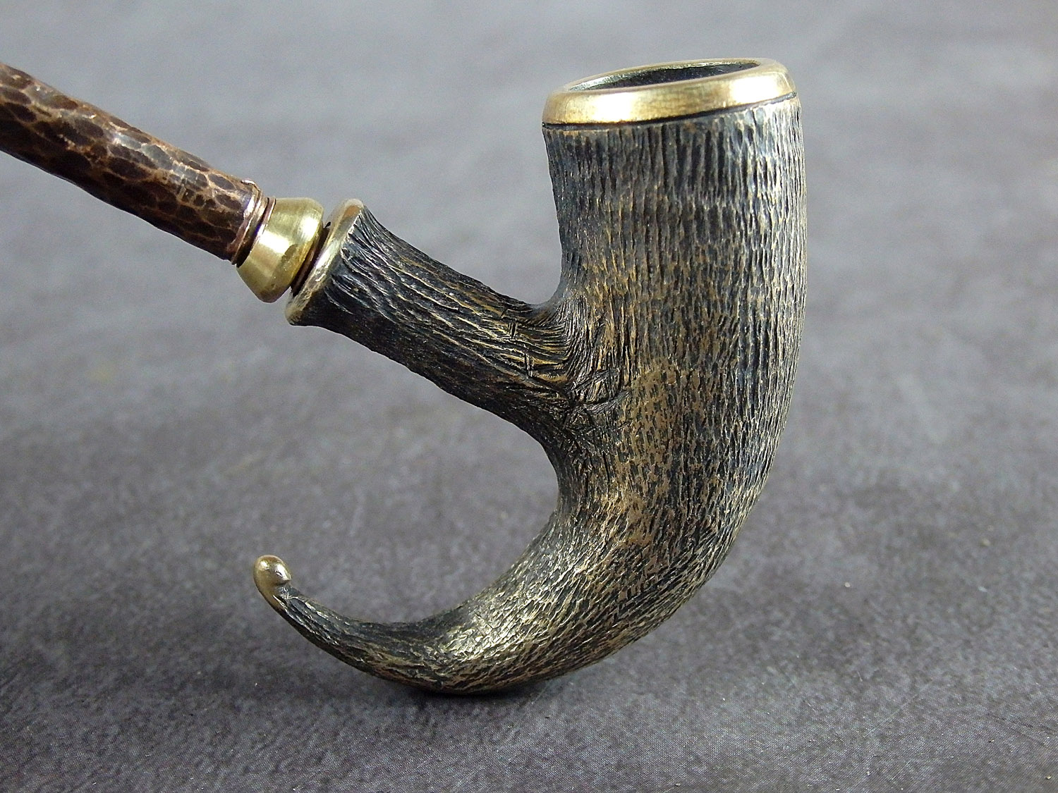 Freehand churchwarden bronze pipe with imitation of animal horn. The mouthpiece is made of copper, it is screwed on, can have a length (from 5 to 30 cm) and a shape at the request of the buyer. The pipe is working, not decorative, the model is tested by the master.