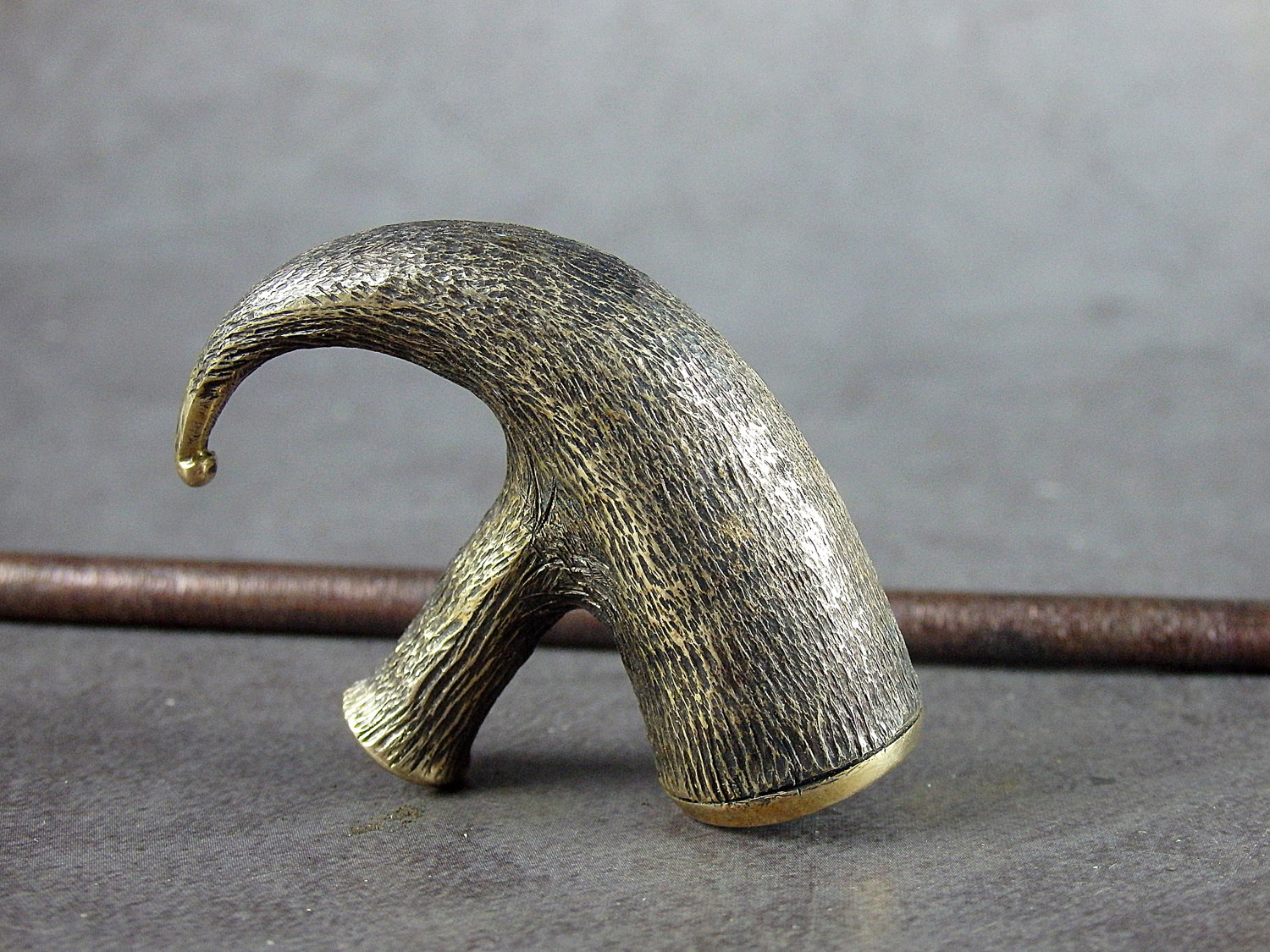 To make this item, a wax model was cut out by hand. Then, using the lost wax method, bronze parts were cast.