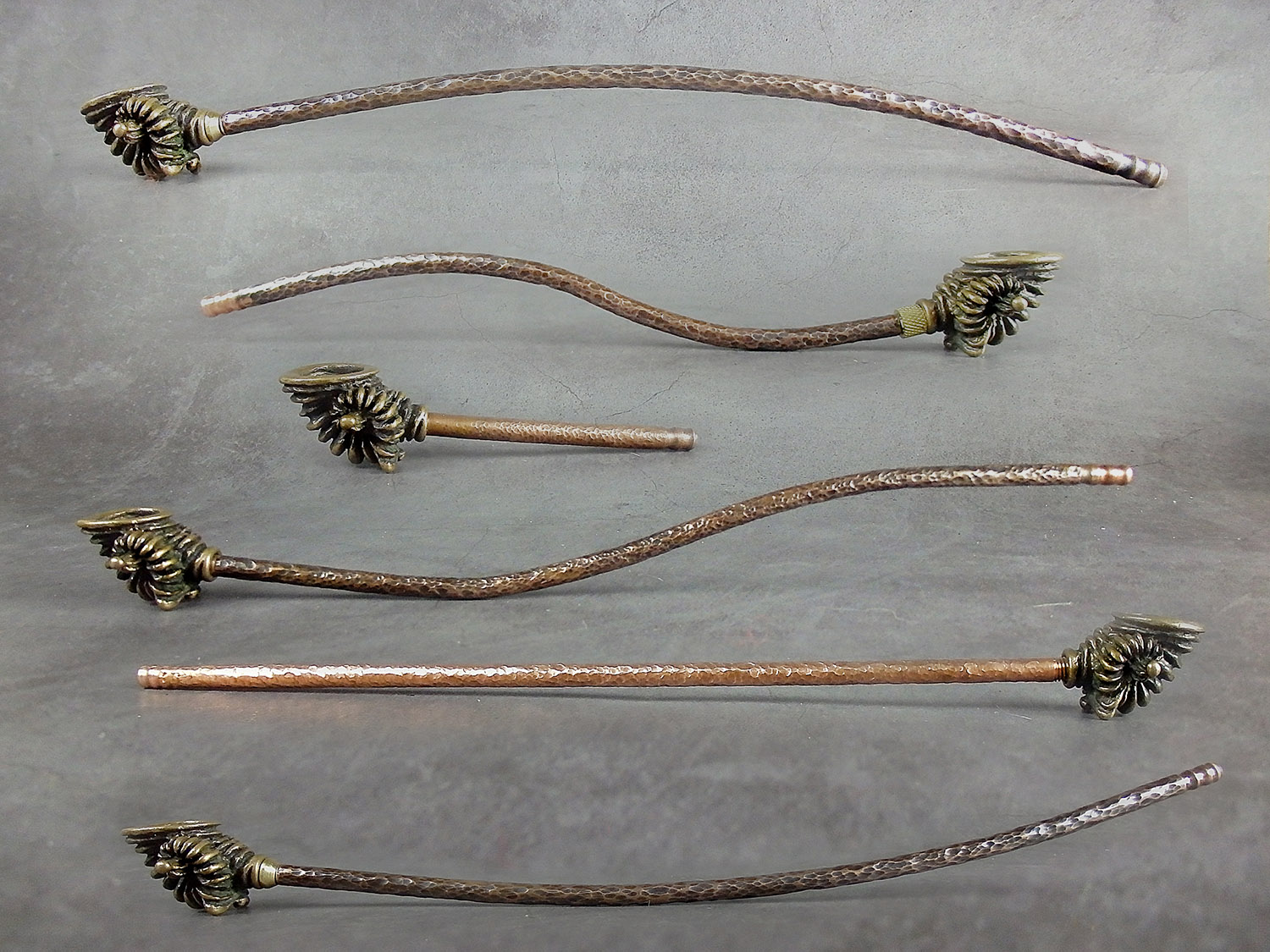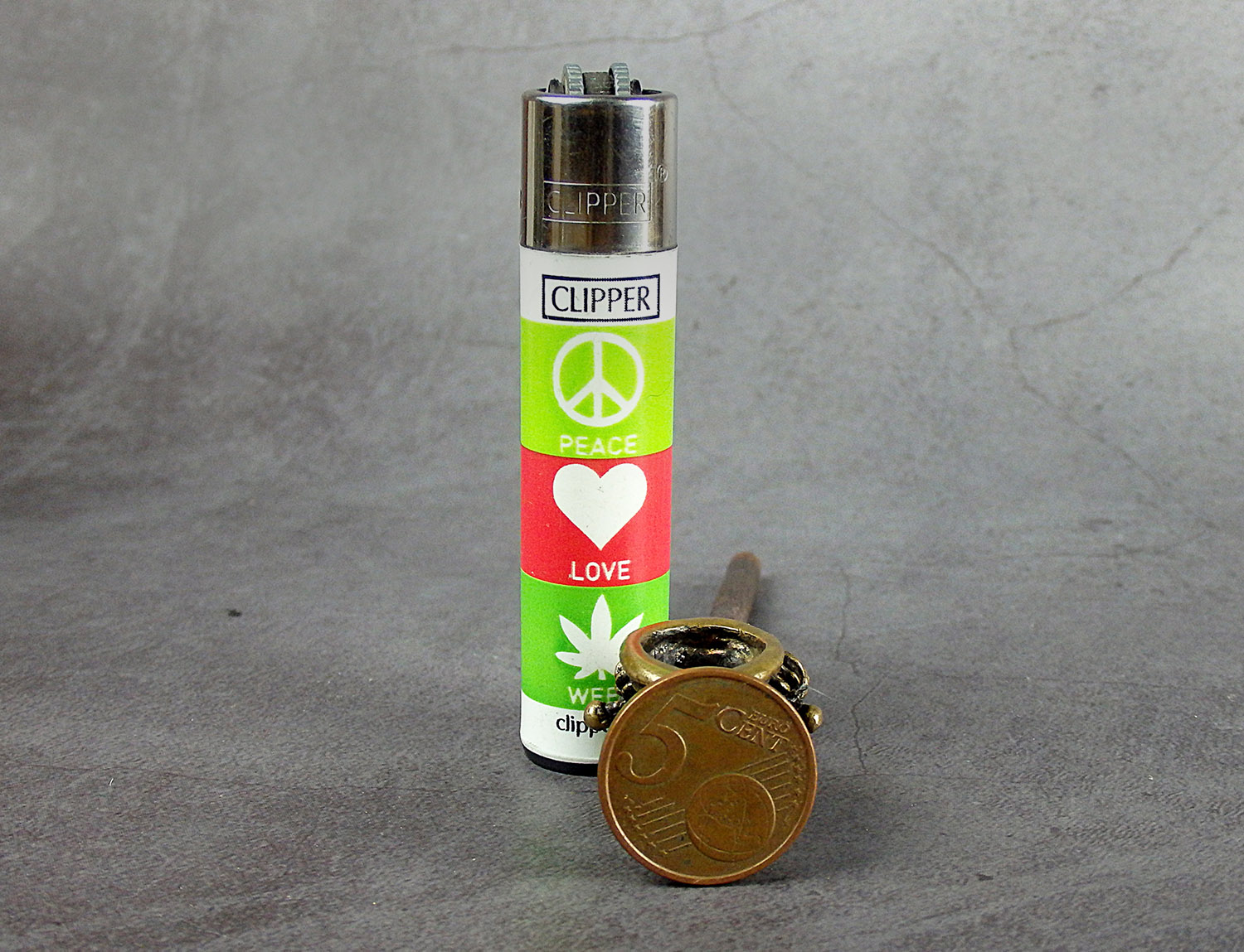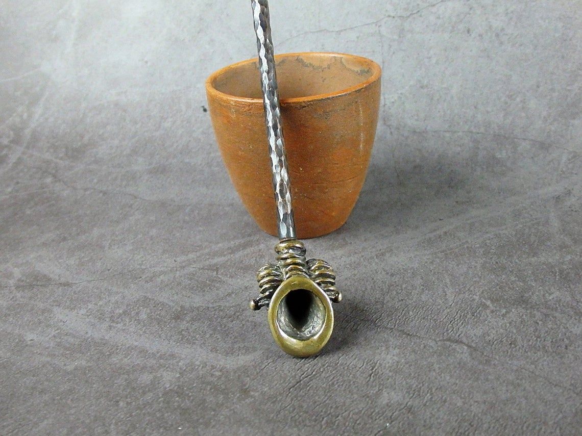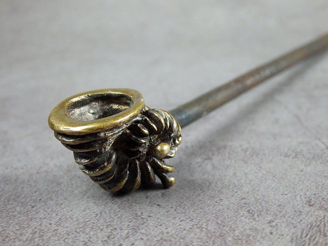Bronze smoking pipe with a bowl in the shape of ram horns. The mouthpiece is made of copper, it is screwed on, can have a length (from 3 to 30 cm) and a shape at the request of the buyer. The pipe is working, not decorative, the model is tested by the master.