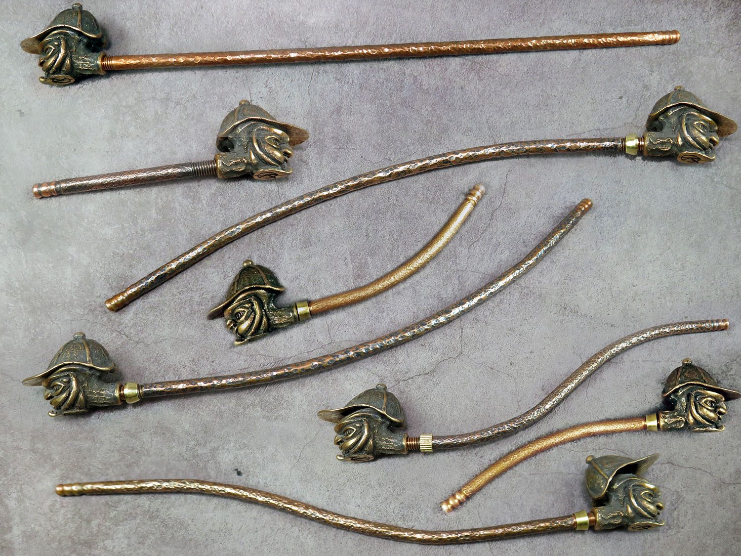 The mouthpiece is made of copper, it is screwed on, can have a length (from 3 to 30 cm) and a shape at the request of the buyer. Note! When choosing a mouthpiece, keep in mind that this pipe can stand on a plane only with straight mouthpiece.