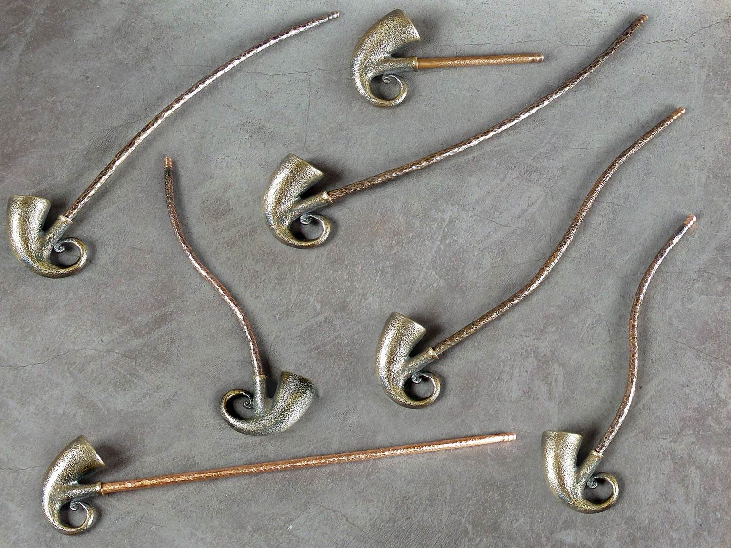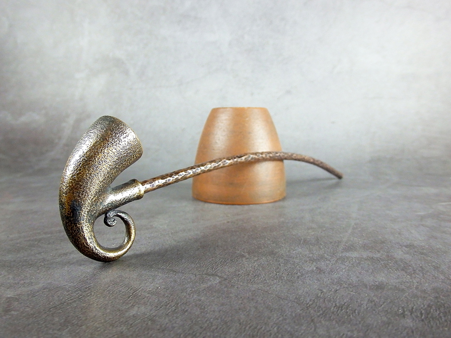 Freehand churchwarden bronze pipe shaped hunting horn. The mouthpiece is made of copper, it is screwed on, can have a length (from 5 to 30 cm) and a shape at the request of the buyer. The pipe is working, not decorative, the model is tested by the master.