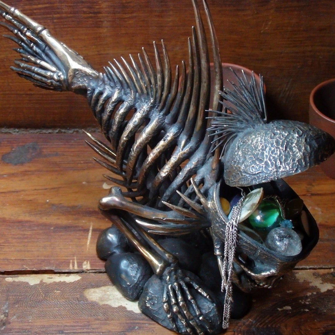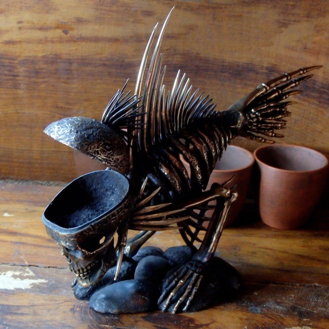 This creature will be an amazing desktop souvenir with a secret - you can hide many different trifles in its opening skull.