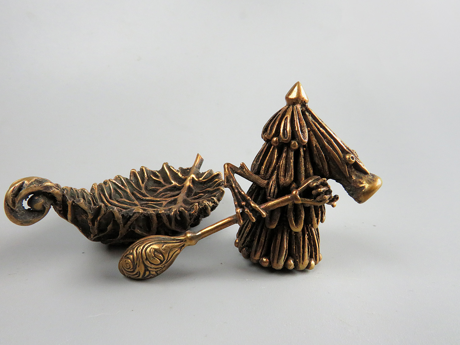 A small room decoration - a pair of bronze Kikimors, fairy-tale forest characters. A great symbolic gift for those who set off on a journey or are waiting for a meeting after parting.
