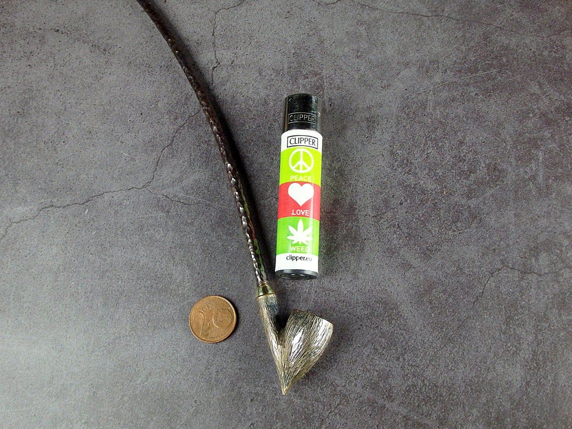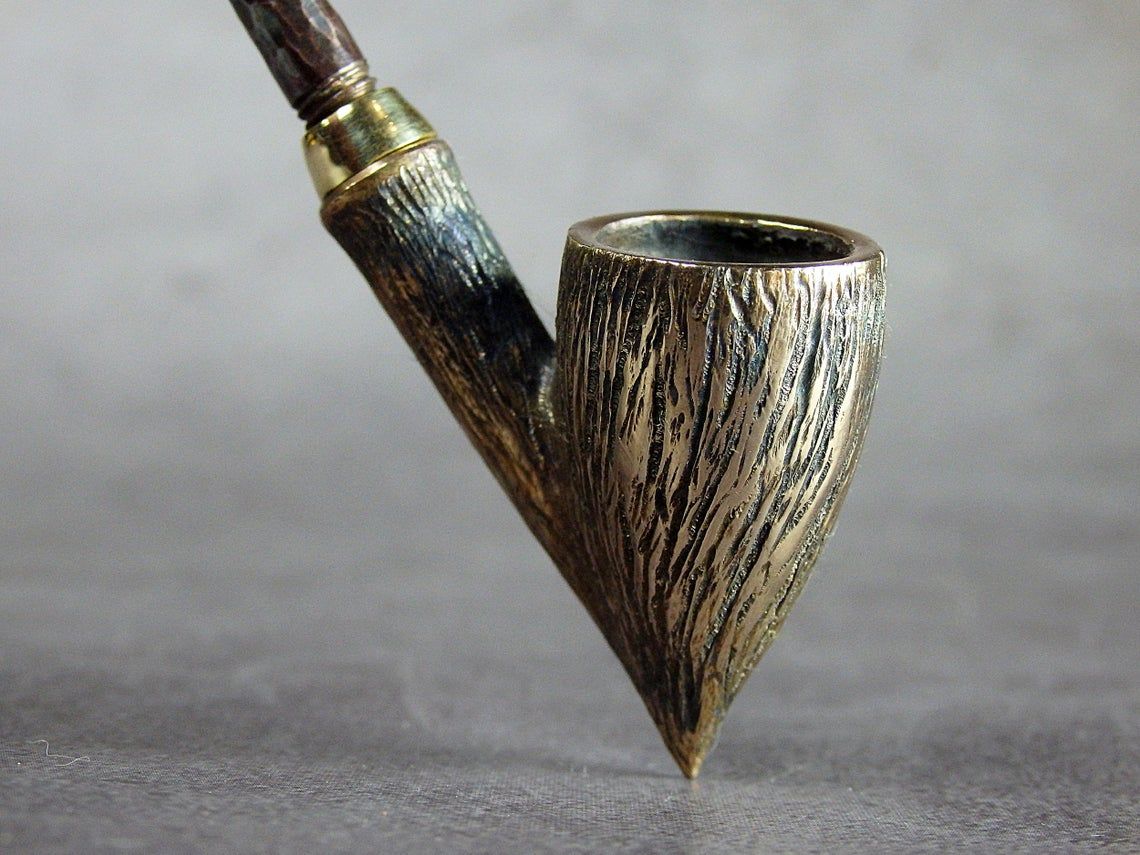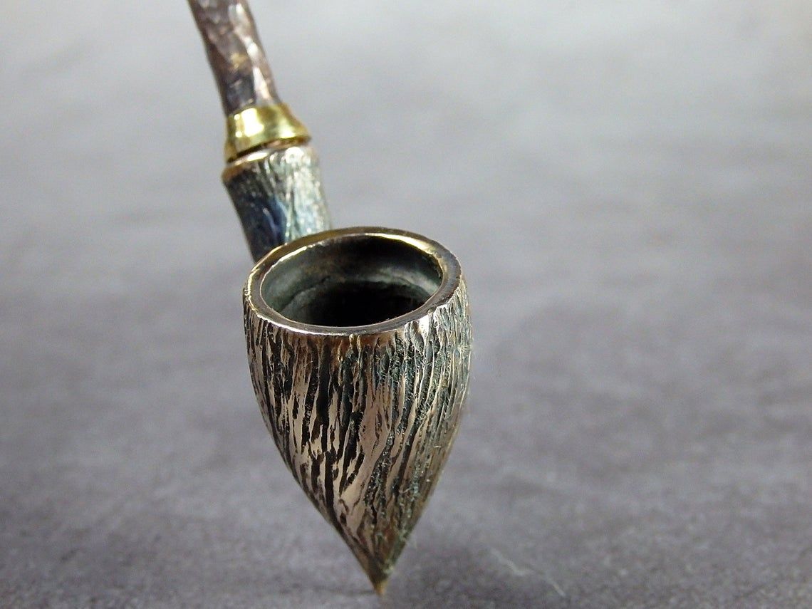 Freehand churchwarden bronze pipe with imitation of light tree bark. The mouthpiece is made of copper, it is screwed on, can have a length (from 5 to 30 cm) and a shape at the request of the buyer. The pipe is working, not decorative, the model is tested by the master.