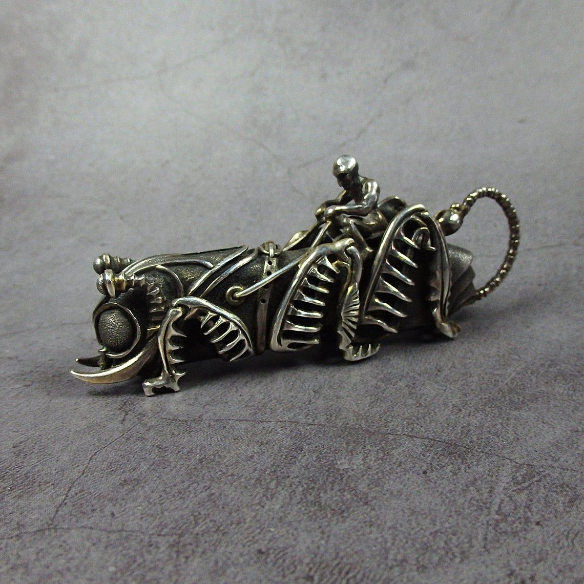 But, if you like in things not only one functional, but in addition there is also symbolism, eclecticism, layers of meanings - then this is definitely your thing! In addition, this saddled half-grasshopper-half-scorpion will most sure be appreciated by non-conformists, calmed down punks and a self-made men. And, if you have such friends, now you know what to give them.