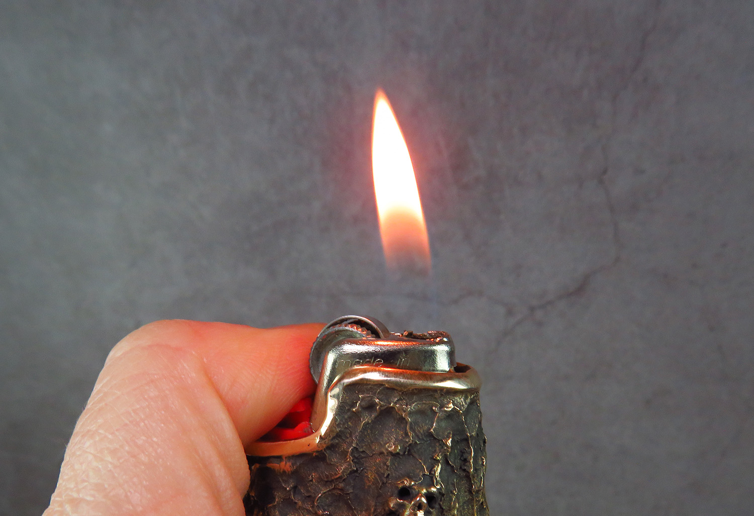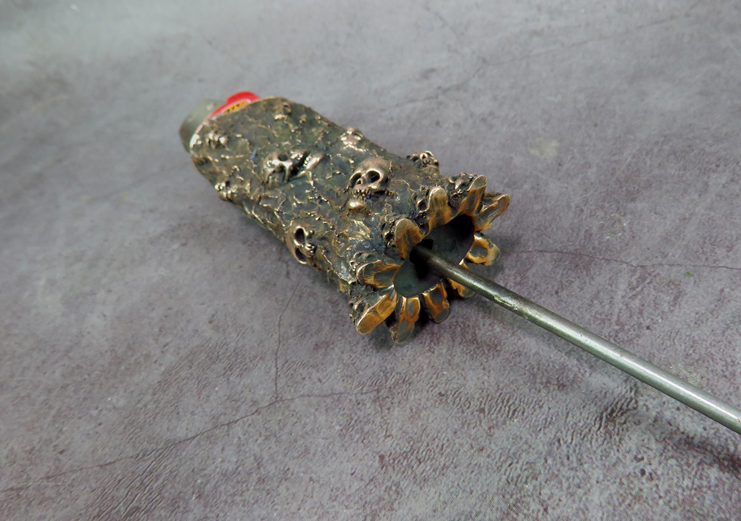 Bronze case with skulls for a disposable lighter.